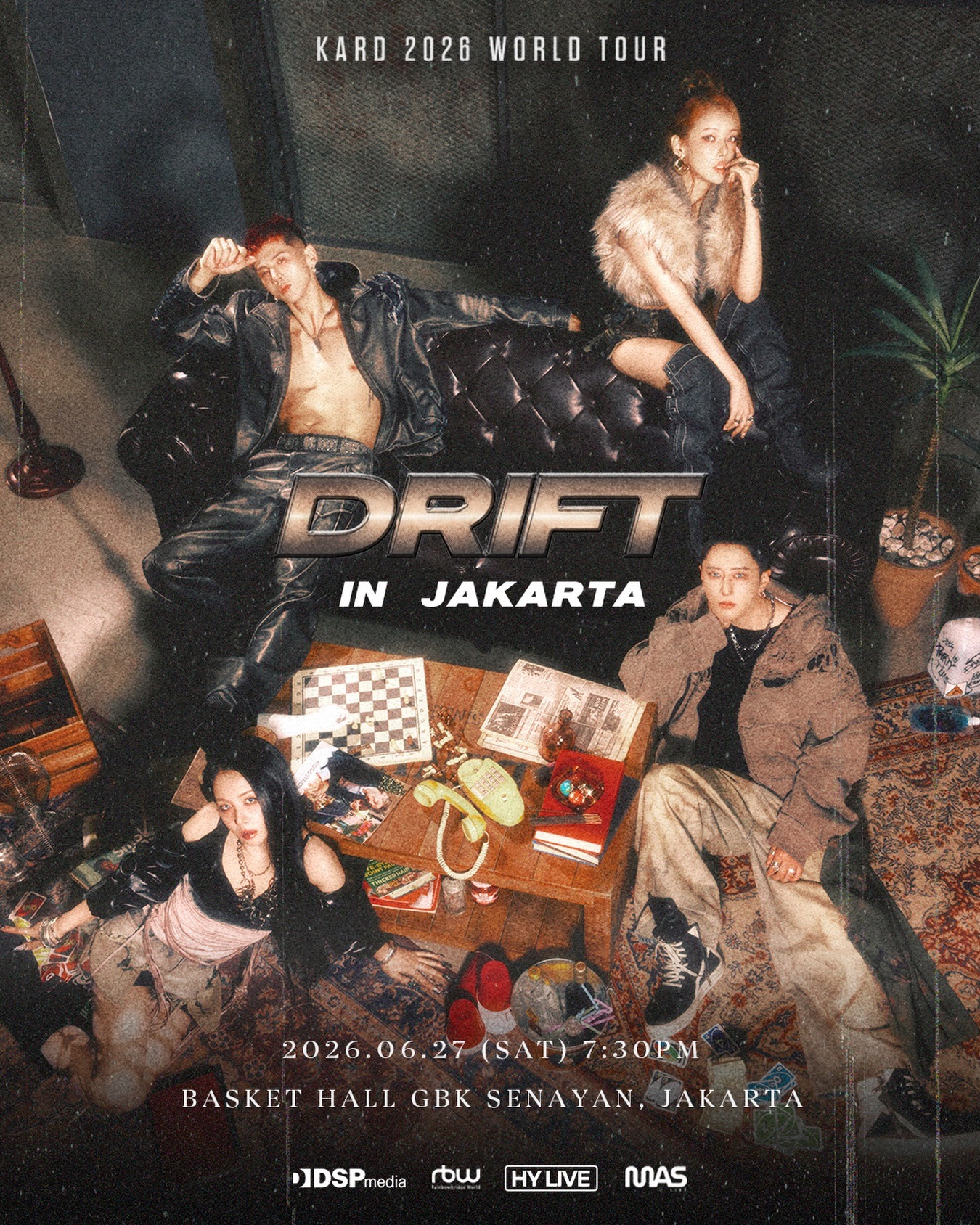 Jakarta, 28 Februari 2026 — Grup co-ed K-pop KARD dipastikan akan menyambangi Indonesia dalam rangkaian tur dunia mereka bertajuk “KARD 2026 WORLD TOUR <DRIFT> IN JAKARTA”. Konser tersebut dijadwalkan berlangsung pada Sabtu, 27 Juni 2026 pukul 19.30 WIB di Basket Hall GBK Senayan, Jakarta Pusat.