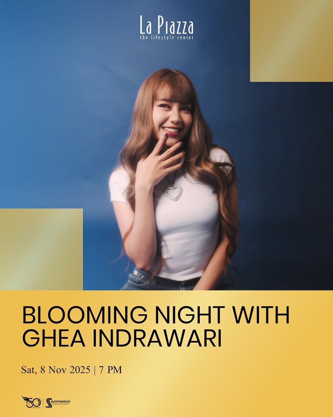 Sementara itu, suasana hiburan akhir pekan juga akan hadir di La Piazza – Summarecon Mall Kelapa Gading melalui acara Blooming Night with Ghea Indrawari pada Sabtu, 8 November 2025 pukul 19.00 WIB. Acara ini terbuka untuk umum dan menjadi wadah bagi penggemar Ghea untuk bernyanyi bersama di ruang terbuka.