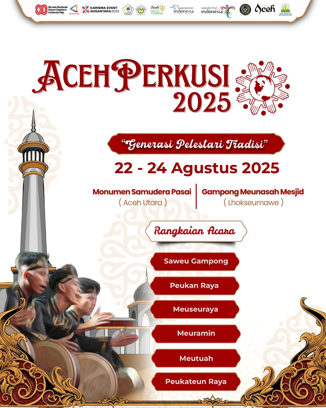 Dengan beragam program yang disusun, Aceh Perkusi 2025 menjadi salah satu agenda budaya yang menyoroti peran seni tradisi dalam memperkuat karakter masyarakat. Informasi lebih lanjut mengenai rangkaian kegiatan dapat diperoleh melalui media sosial resmi Aceh Perkusi maupun kanal informasi kebudayaan Pemerintah Aceh.