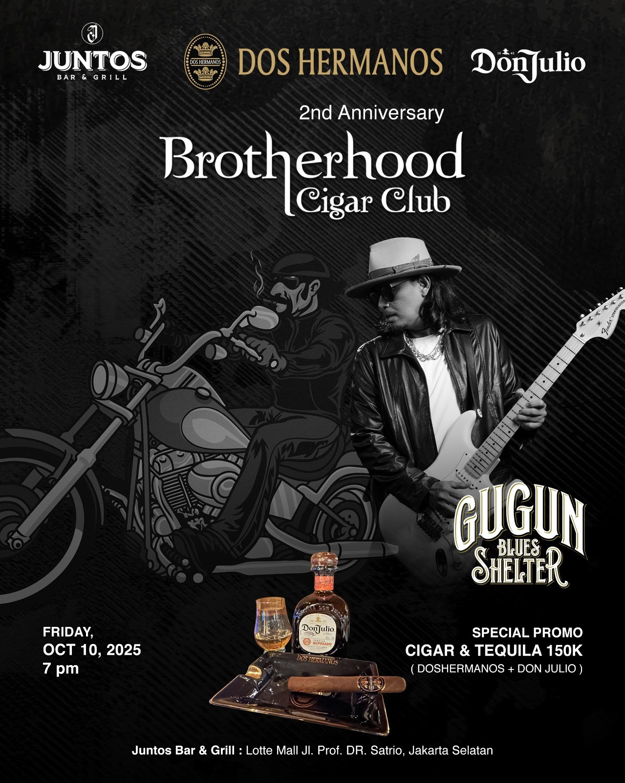 Jakarta, 6 Oktober 2025 — Komunitas pencinta cerutu Brotherhood Cigar Club merayakan ulang tahun (HUT) ke-2 mereka dengan penuh kehangatan dan kebersamaan di Juntos Bar & Grill, Lotte Mall, Jalan Prof. DR. Satrio, Jakarta Selatan. Acara bertema “Celebrate with The Dons” ini menggandeng salah satu brand ternama, Dos Hermanos sebagai mitra kolaborasi.