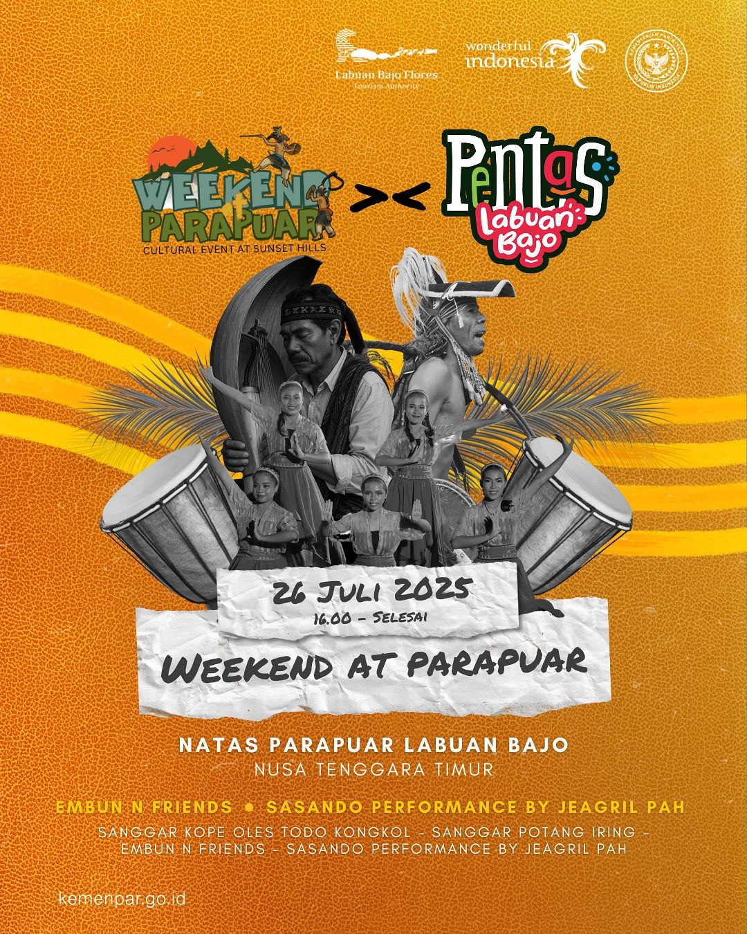 Sebagai penutup pekan, Weekend at Parapuar: Cultural Event at Sunset Hills menghadirkan kombinasi antara seni pertunjukan dan pengalaman alam yang khas. Informasi lebih lanjut mengenai acara ini dapat diperoleh melalui kanal media sosial resmi Weekend at Parapuar maupun Pentas Labuan Bajo.