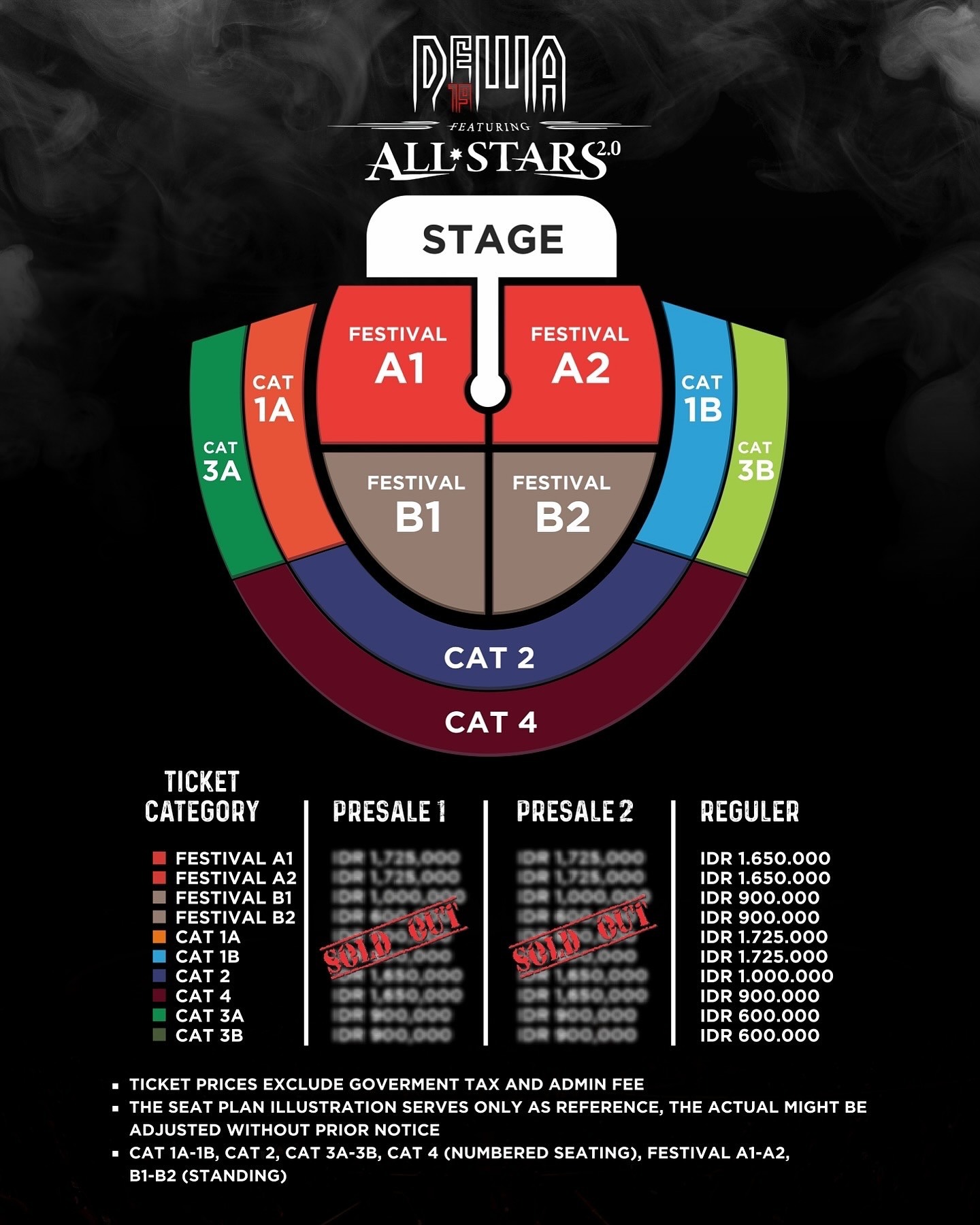 Tiket reguler untuk acara ini dibanderol mulai dari Rp 600.000 hingga 1.650.000 rupiah yang tersedia di berbagai platform penjualan tiket online dan dewatiket.id.