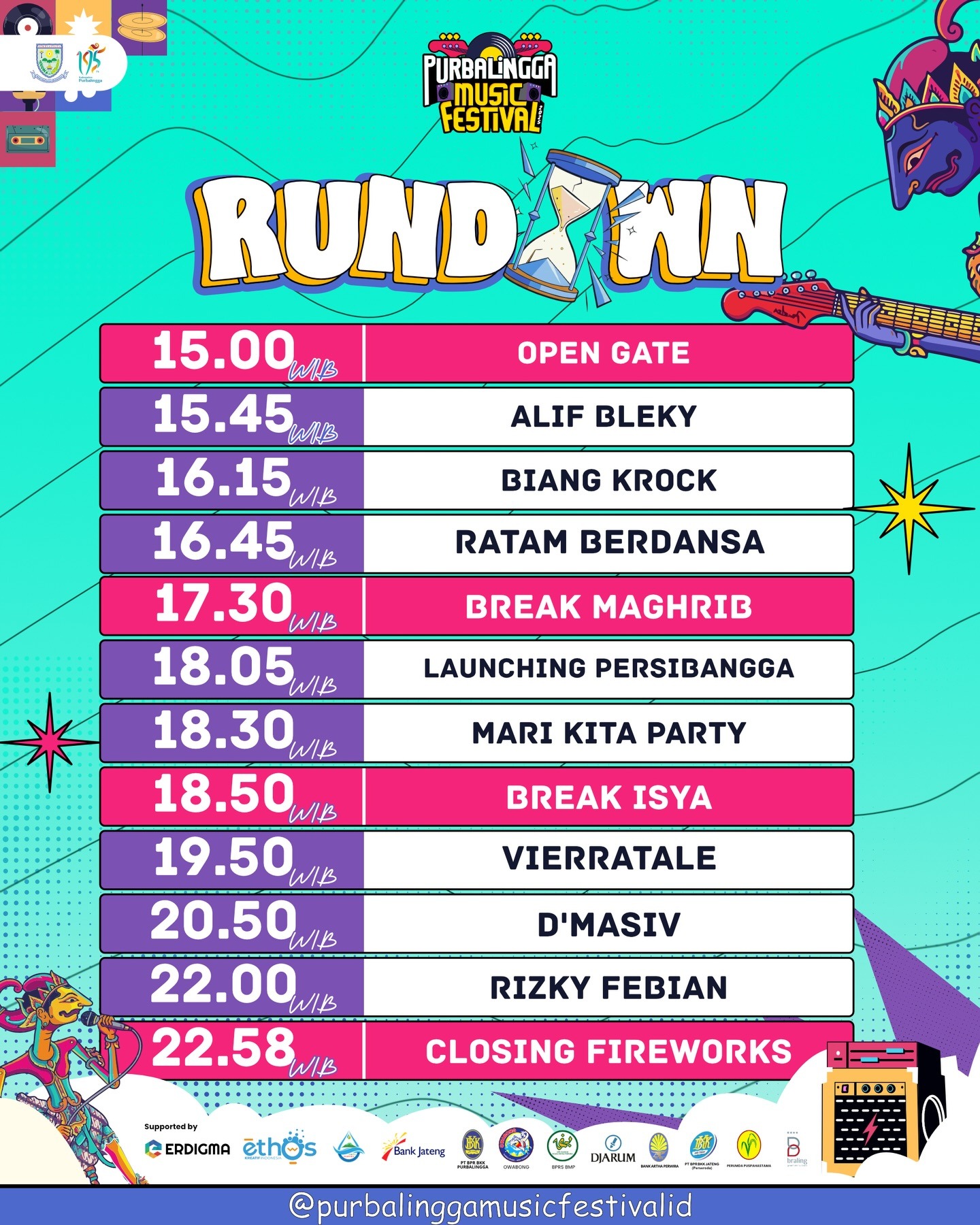 Festival musik ini direncanakan menghadirkan tiga artis nasional ternama, yaitu D’Masiv, Vierratale, dan Rizky Febian, disertai sejumlah musisi lokal. Pengumuman lineup ini telah dikonfirmasi melalui berbagai sumber lokal, termasuk pernyataan Kepala Dinas Komunikasi dan Informatika Purbalingga serta pemberitaan media daerah.