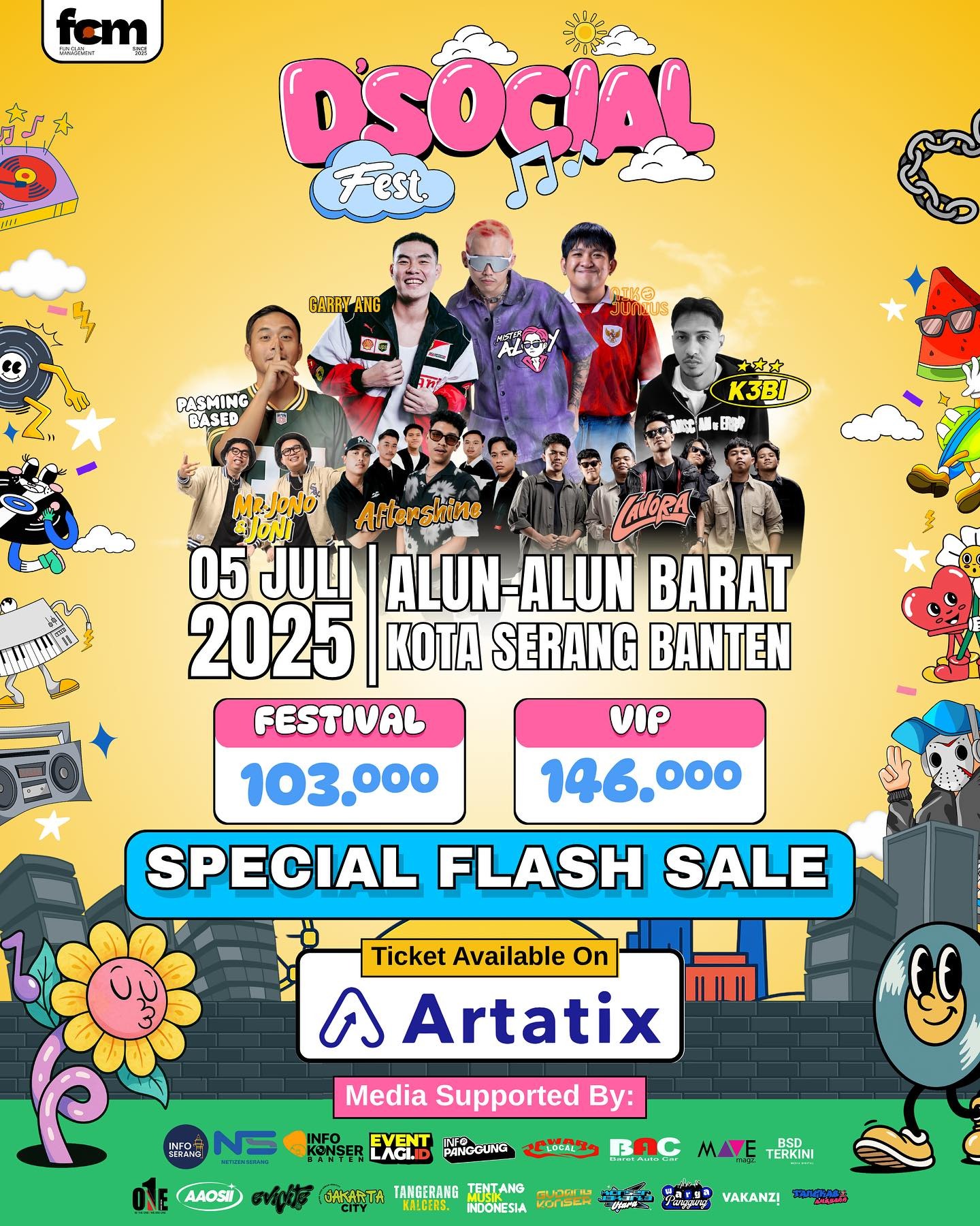 Untuk informasi lebih lanjut mengenai line up, jadwal acara, dan pembelian tiket, pengunjung dapat mengikuti akun media sosial resmi D’social Fest atau mengunjungi situs resmi Artatix.
