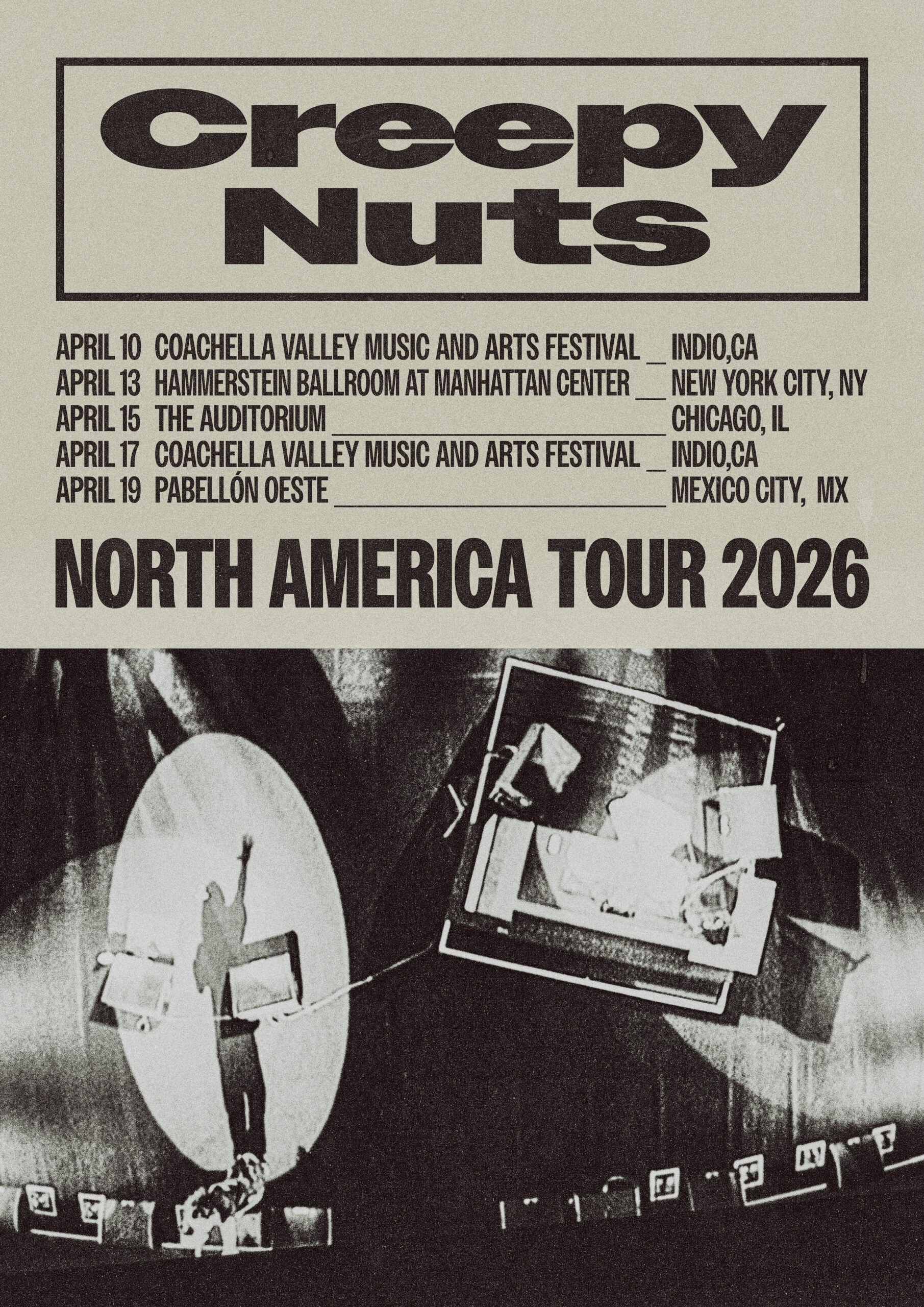 Tur Creepy Nuts North America Tour 2026 akan dimulai dengan penampilan debut mereka di Coachella Valley Music and Arts Festival 2026 pada 10 April dan 17 April di Indio, California. Setelah itu, Creepy Nuts akan menggelar konser tunggal pertama mereka di Hammerstein Ballroom, New York (13 April), The Auditorium, Chicago (15 April), serta Pabellón Oeste, Mexico City (19 April). Penjualan tiket akan dimulai pada 30 Januari 2026, dengan informasi lengkap dan pembaruan selanjutnya tersedia melalui situs resmi tur mereka: https://creepynuts.com/northamericatour2026/