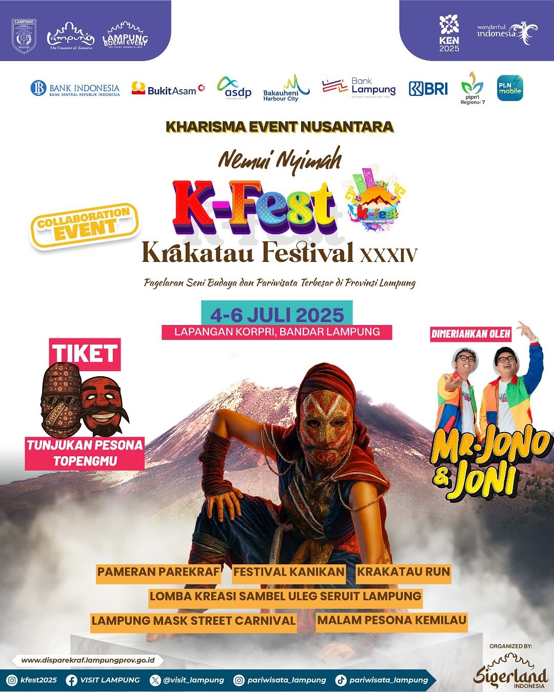 Untuk informasi lebih lanjut dan pembaruan acara, masyarakat dapat mengunjungi akun resmi Instagram penyelenggara di @kfestlampung.