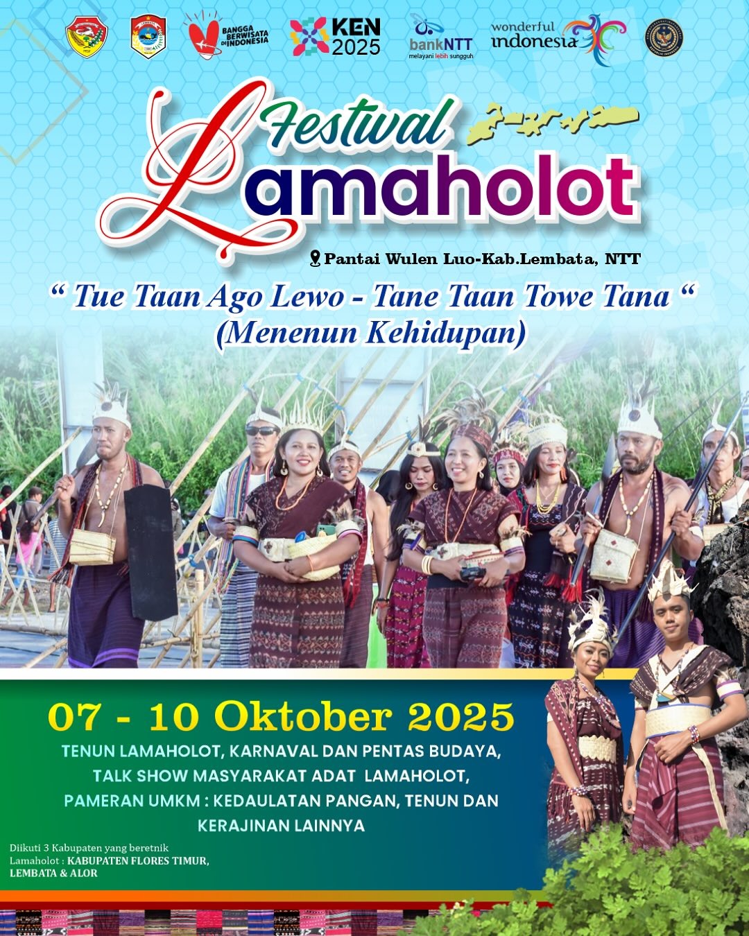 Lembata, 30 September 2025 – Festival Lamaholot akan kembali digelar di Kabupaten Lembata, Nusa Tenggara Timur, pada 7 hingga 10 Oktober 2025 mendatang. Perhelatan budaya ini berlangsung di Pantai Wulen Luo dengan mengusung tema “Tue Taan Ago Lewo – Tane Taan Towe Tana.”