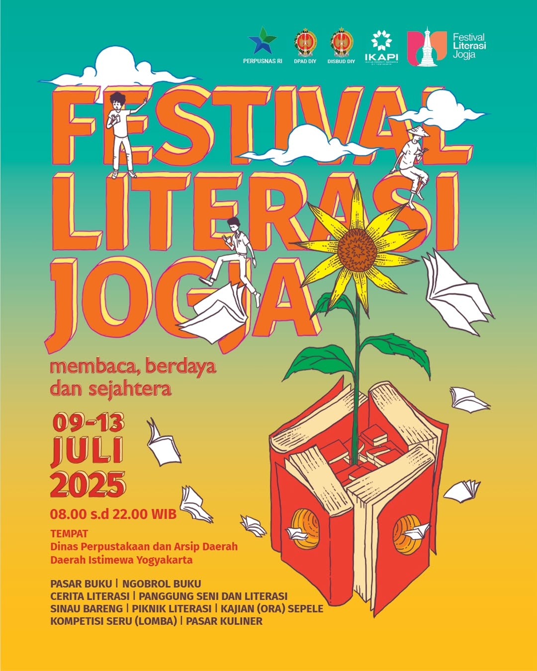 Yogyakarta, 30 Juni 2025 — Dinas Perpustakaan dan Arsip Daerah Daerah Istimewa Yogyakarta (DIY) akan menjadi tuan rumah Festival Literasi Jogja 2025 yang dijadwalkan berlangsung pada 9 hingga 13 Juli mendatang. Acara ini akan diselenggarakan setiap hari mulai pukul 08.00 hingga 22.00 WIB.