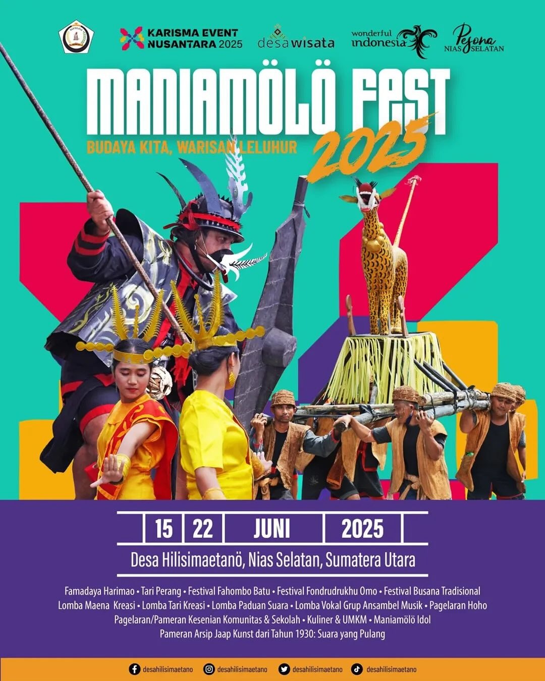 Nias Selatan, 5 Juni 2025 — Desa Hilisimaetanö di Kabupaten Nias Selatan, Sumatera Utara, akan menjadi pusat perhatian pada pertengahan Juni mendatang. Selama sepekan, mulai tanggal 15 hingga 22 Juni 2025, kawasan ini akan menggelar Maniamölö Fest, sebuah festival budaya yang menyoroti beragam tradisi lokal masyarakat Nias Selatan.