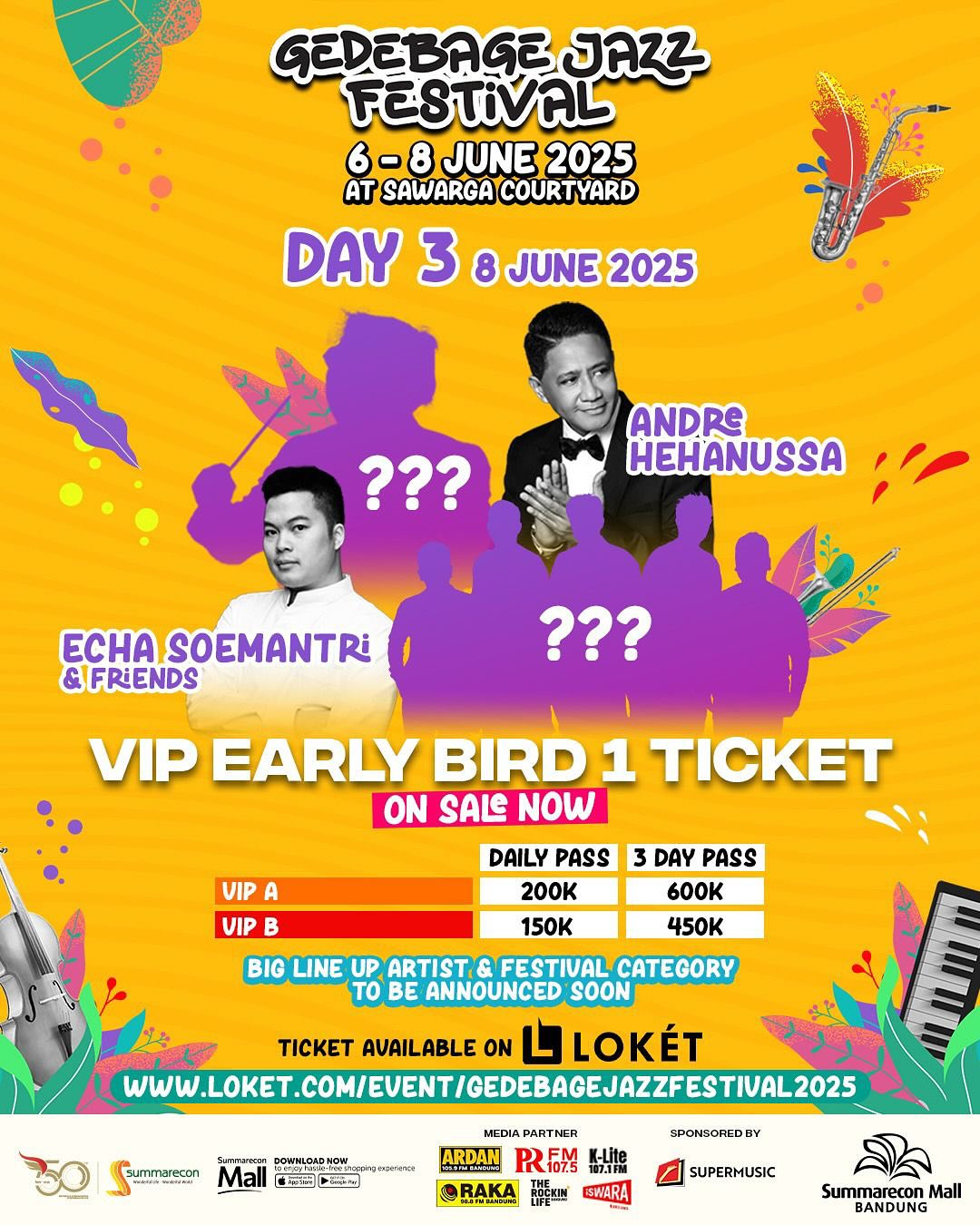 Bandung, 10 April 2025 — Gedebage Jazz Festival kembali digelar tahun ini, menghadirkan deretan musisi jazz Tanah Air dalam rangkaian konser yang akan berlangsung selama tiga hari, dari tanggal 6 hingga 8 Juni 2025, bertempat di Summarecon Mall Bandung, kawasan Gedebage, Bandung Timur.
