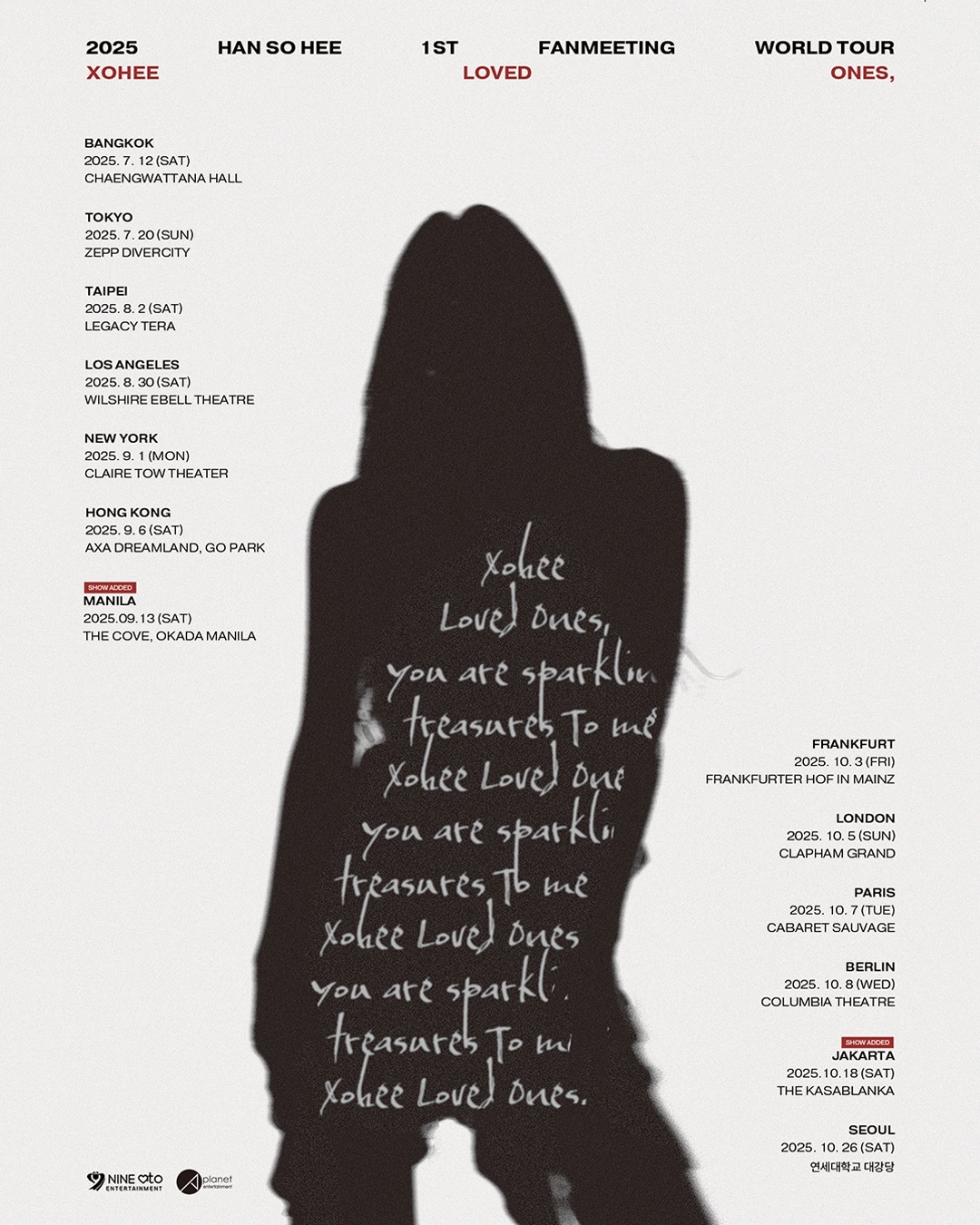 “We are pleased to announce the 2025 HAN SO HEE 1ST FANMEETING WORLD TOUR [Xohee Loved Ones,]. We kindly ask for your warm support and interest from all the fans.” tulis 9ato Entertainment di website resmi mereka.