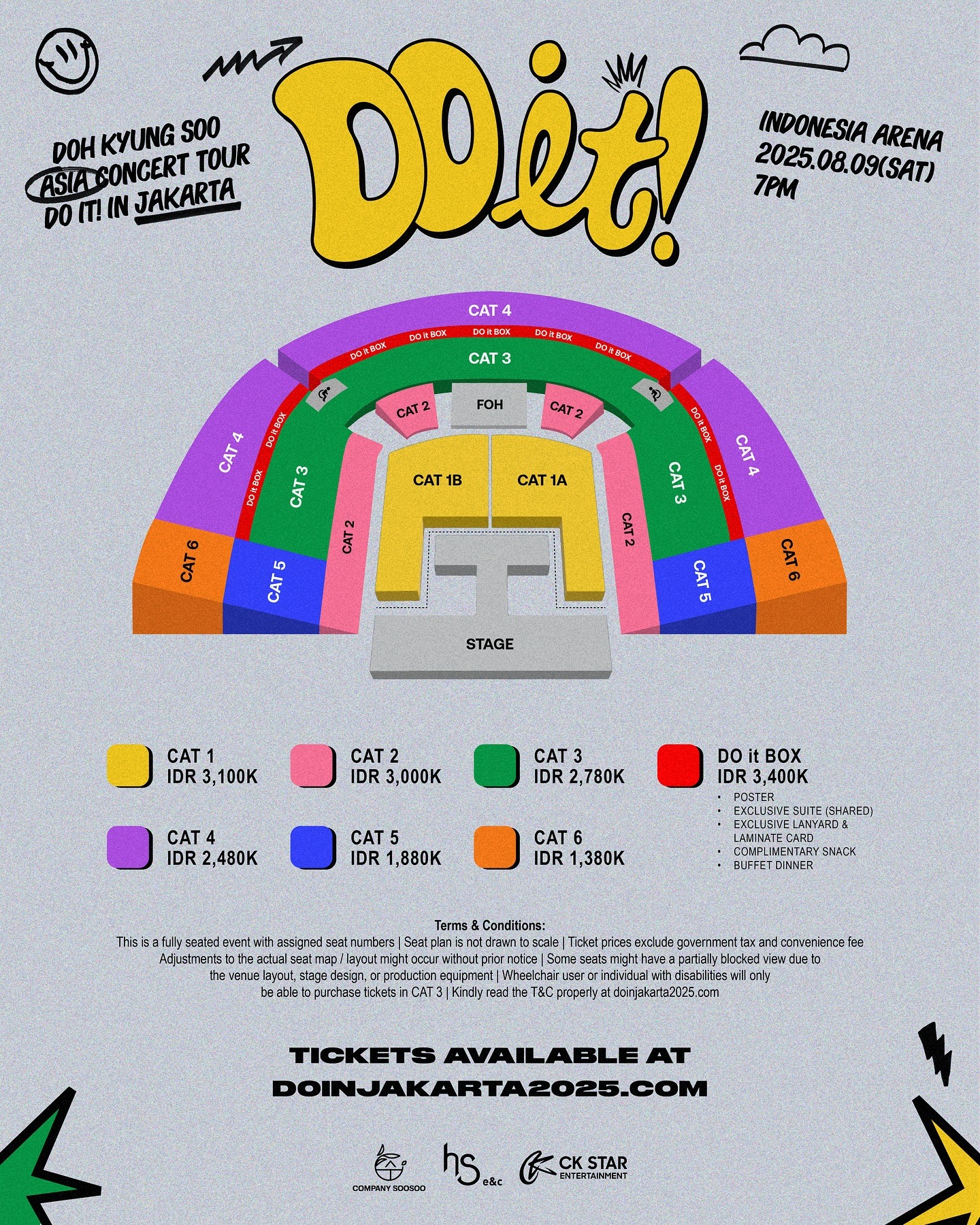 Harga-harga tersebut belum termasuk pajak dan biaya tambahan lainnya. Penjualan umum akan dibuka pada Senin, 9 Juni 2025, mulai pukul 14.00 WIB. Tiket dapat dibeli melalui situs resmi di doinjakarta2025.com.