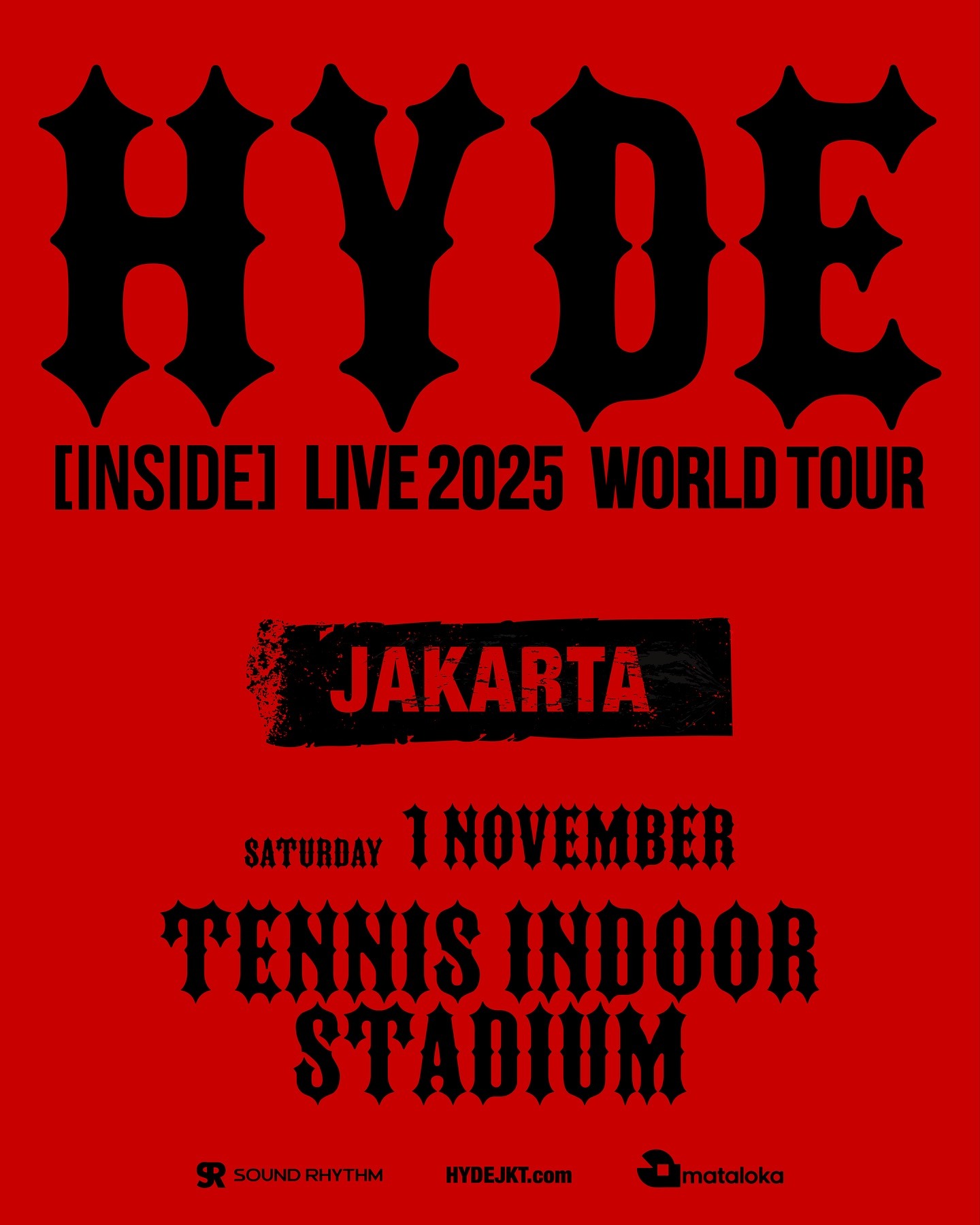 Jakarta, 13 Juni 2025 — Penyanyi legendaris asal Jepang, HYDE, dipastikan akan menggelar konser solo di Jakarta sebagai bagian dari rangkaian tur dunia bertajuk “HYDE [INSIDE] LIVE 2025 WORLD TOUR”. Konser ini dijadwalkan berlangsung pada Sabtu, 1 November 2025, di Tennis Indoor Senayan, Jakarta. Kabar ini dikonfirmasi melalui media sosial resmi dan situs web promotor lokal, Sound Rhythm, bekerja sama dengan Mataloka.
