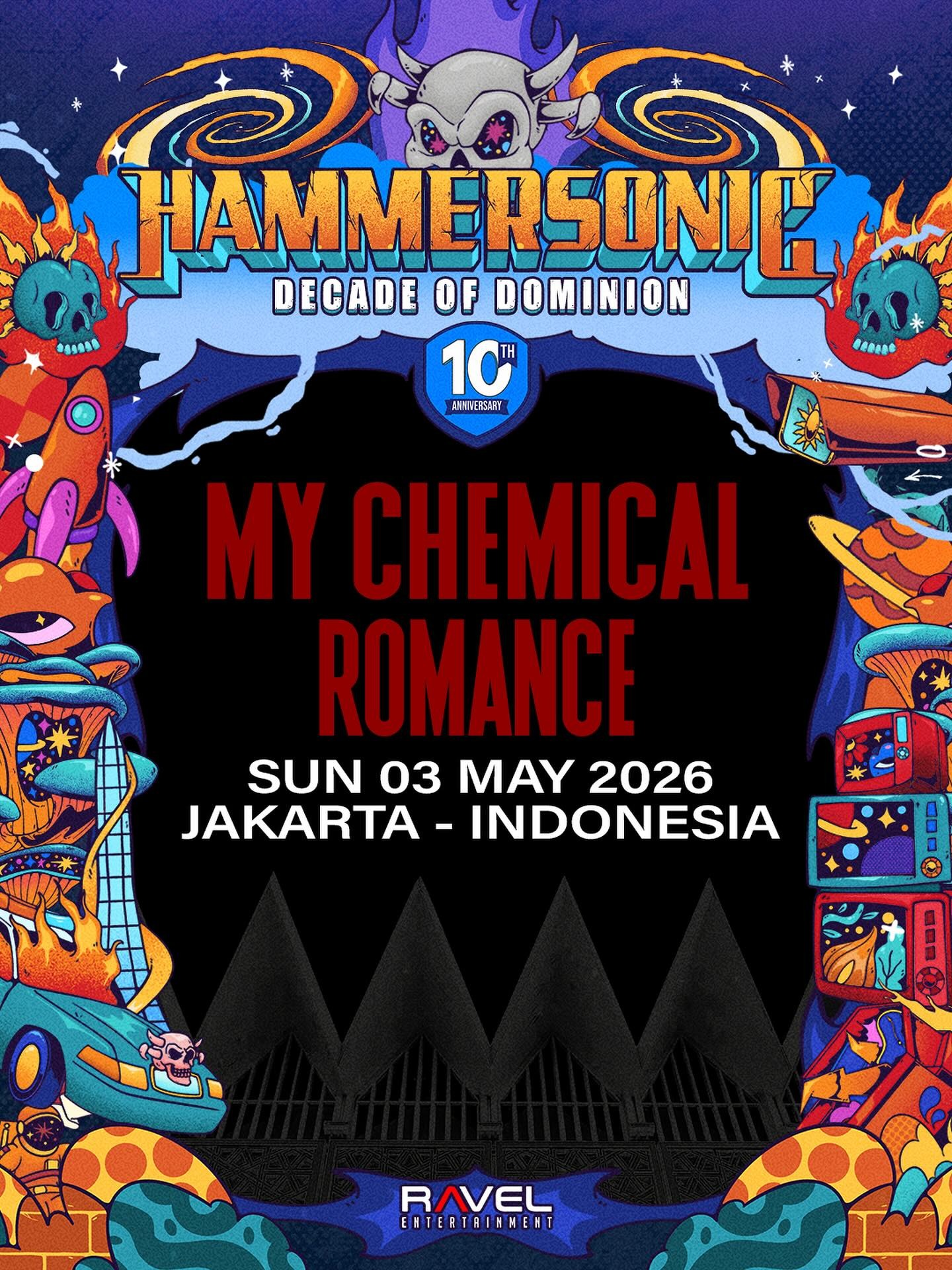 Band rock legendaris asal Amerika Serikat, My Chemical Romance (MCR), dipastikan tampil dalam gelaran Hammersonic pada hari kedua, Minggu, 3 Mei 2026, sebagai bagian dari penampilan perdana mereka di Indonesia sejak reuni.