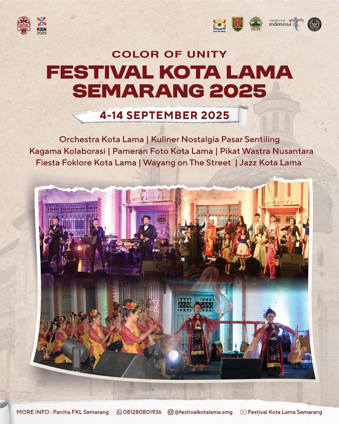 Semarang, 29 Agustus 2025 – Festival Kota Lama 2025 akan berlangsung pada 4 hingga 14 September di kawasan Kota Lama Semarang. Acara ini mengusung tema “Color of Unity” yang menyoroti keragaman budaya serta nilai kebersamaan.