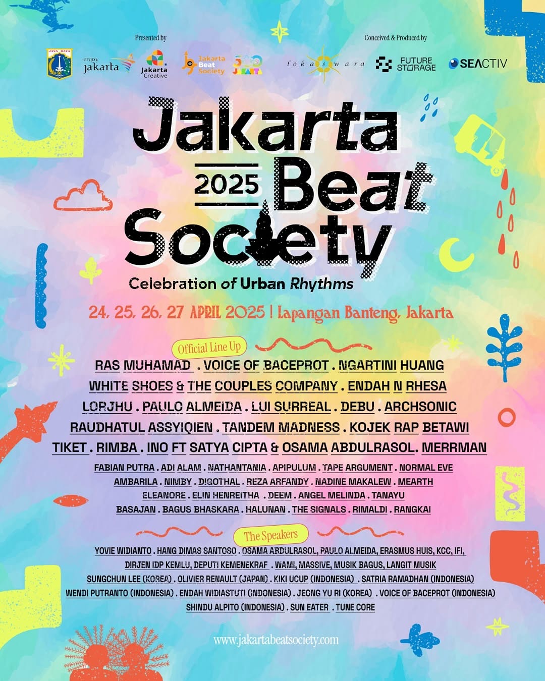 Jakarta, 24 April 2025 — Festival musik internasional Jakarta Beat Society 2025 resmi dimulai hari ini di Taman Lapangan Banteng, Jakarta Pusat. Mengusung tema “Celebration of Urban Rhythms”, acara ini berlangsung selama empat hari, dari 24 hingga 27 April 2025, dengan akses terbuka dan gratis untuk publik.