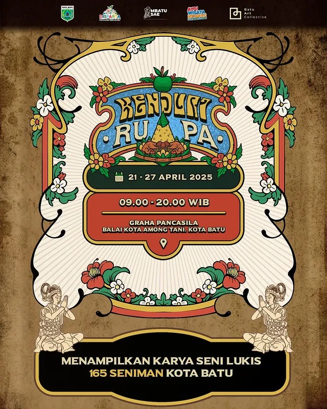Batu, 17 April 2025 – Sebuah langkah sinergis antara Dinas Pariwisata Kota Batu dan Kenduri Rupa Art Exhibition melahirkan pameran seni bertajuk Kenduri Rupa, yang akan digelar pada 21–27 April 2025 di Graha Pancasila, Balai Kota Among Tani, Kota Batu. Acara ini terbuka untuk umum mulai pukul 09.00 hingga 20.00 WIB.