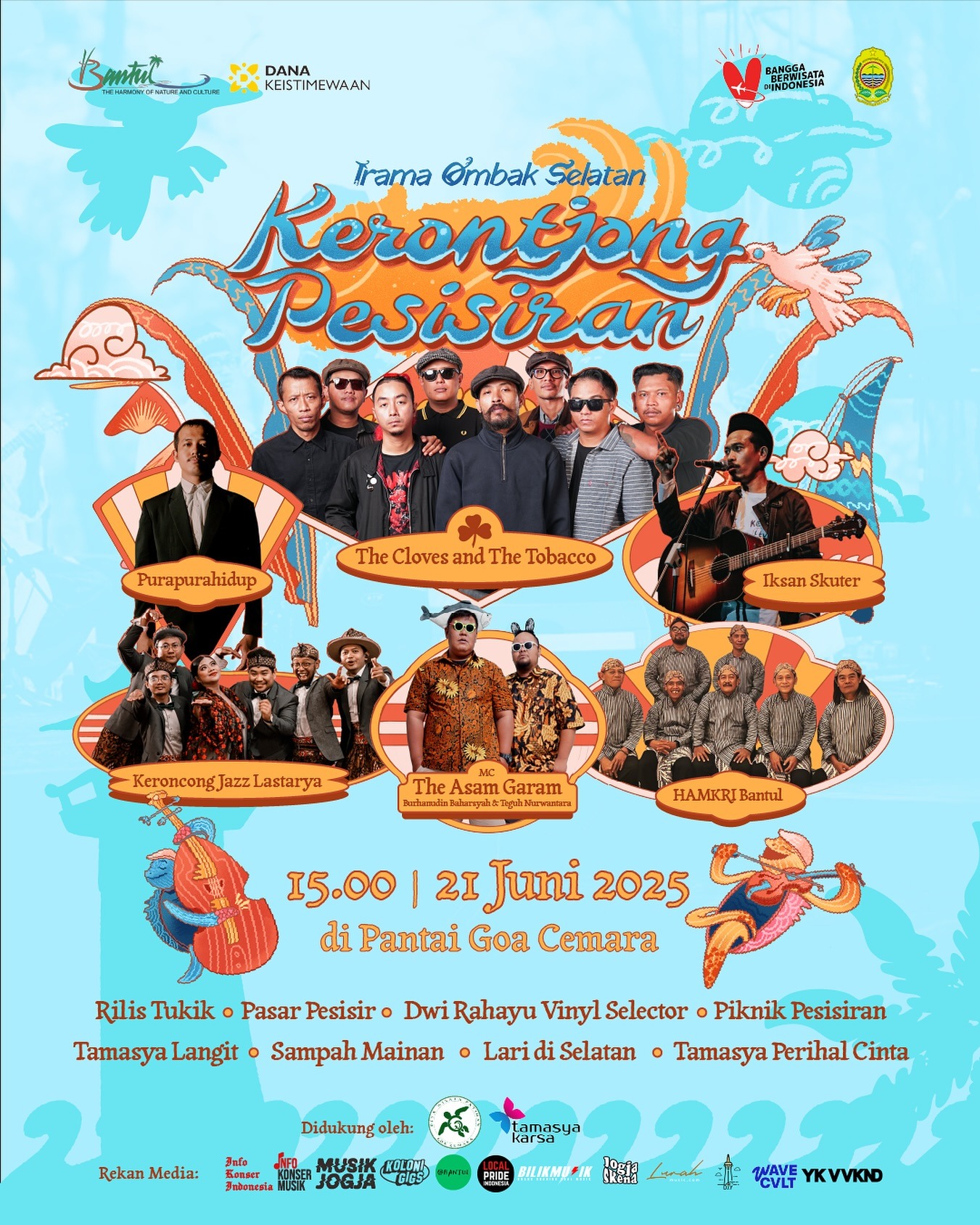 Senin, 9 Juni 2025 – Sebuah pergelaran musik lintas genre bertajuk “Keroncong di Pesisir Pantai: Irama Ombak Selatan” akan diselenggarakan pada Sabtu, 21 Juni 2025, di kawasan wisata Pantai Goa Cemara, Bantul, Daerah Istimewa Yogyakarta. Acara ini bertepatan dengan dua momentum: awal musim migrasi penyu dan peringatan Hari Musik Sedunia, menjadikannya perhelatan yang sarat makna kultural dan ekologis.