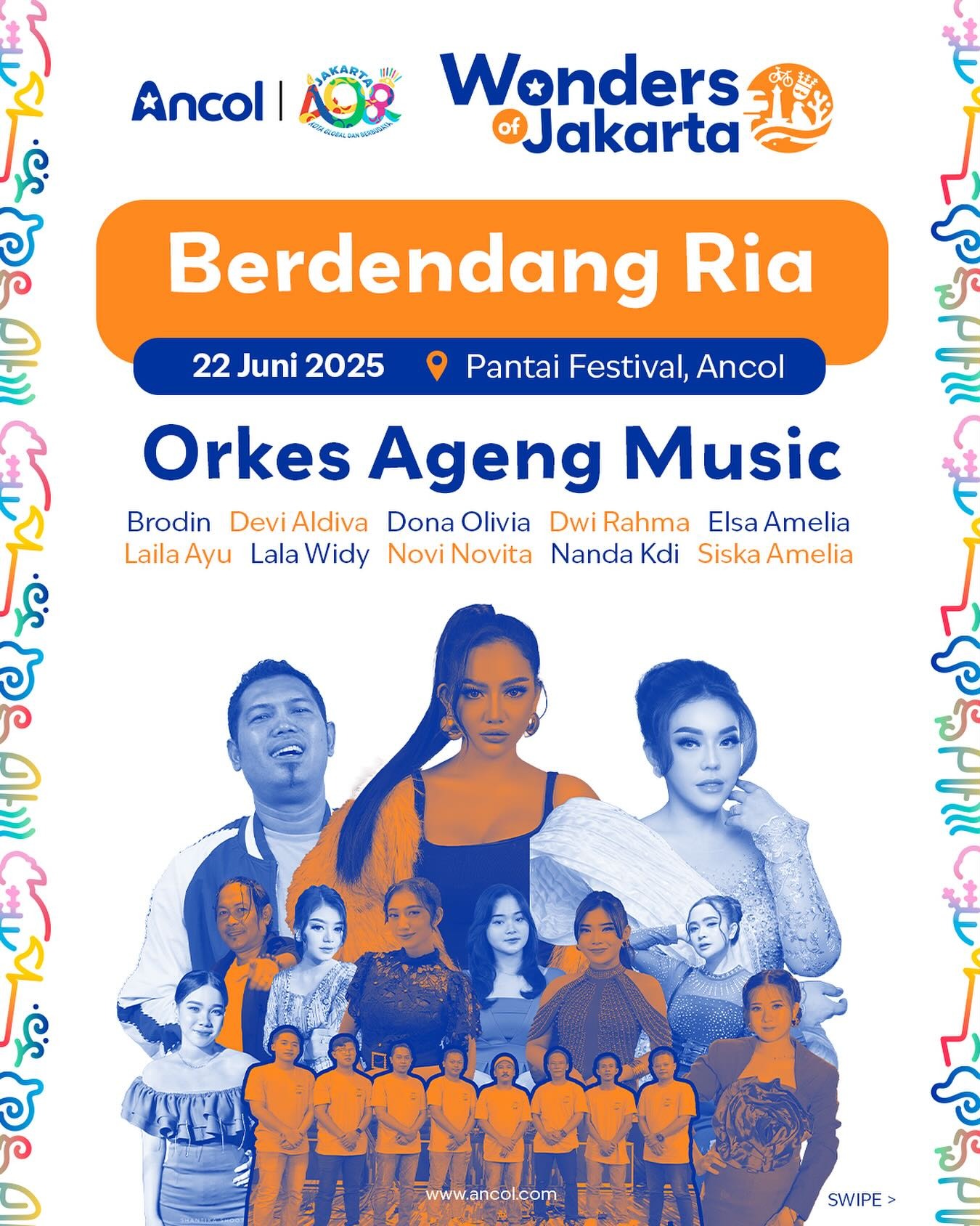 Jakarta, 19 Juni 2025 — Dalam rangka memperingati ulang tahun Jakarta yang jatuh pada 22 Juni, kawasan Ancol kembali akan menjadi tuan rumah bagi sebuah kegiatan hiburan terbuka untuk masyarakat. Acara bertajuk Berdendang Ria akan digelar di Pantai Festival Ancol, dengan menampilkan musik dangdut sebagai sajian utama.