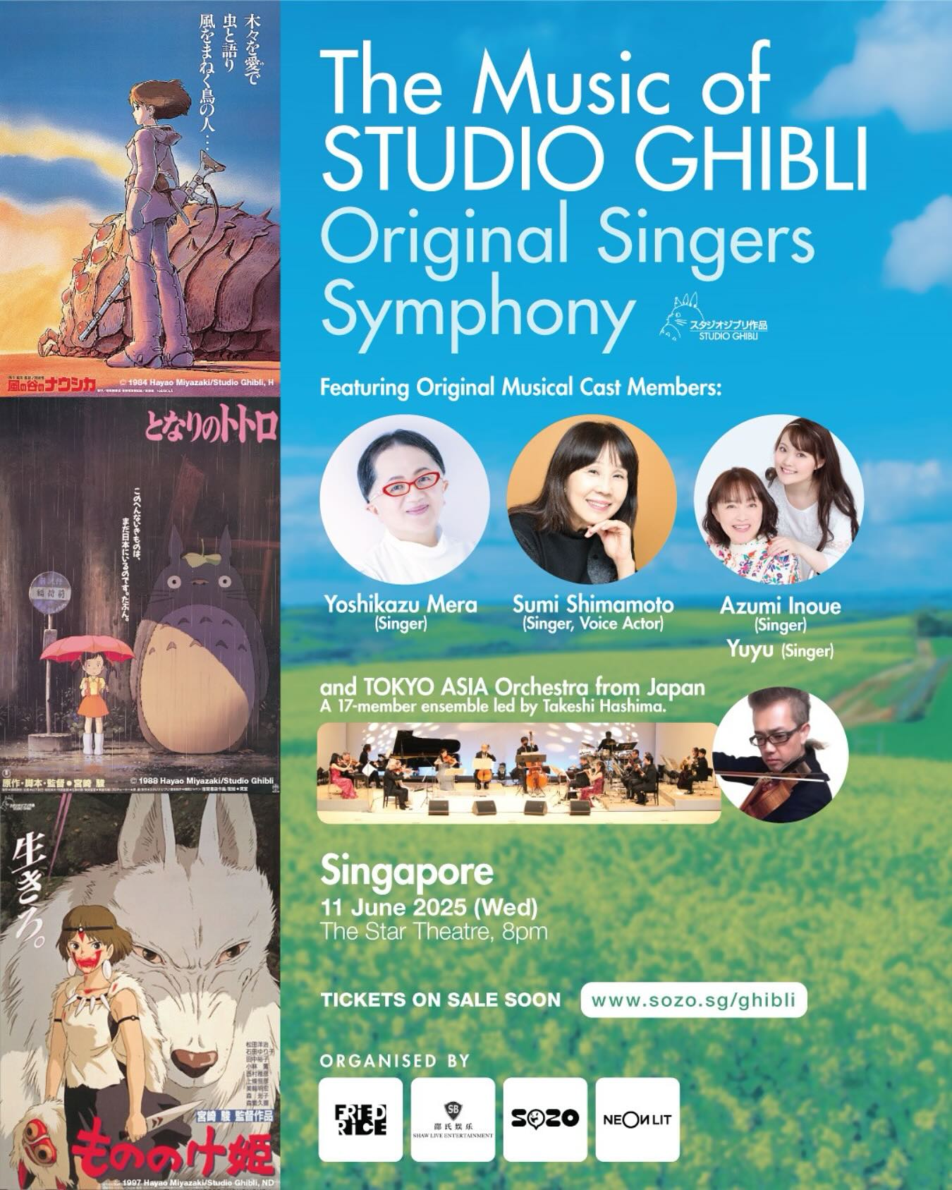 Mereka akan membawakan lagu-lagu dari sejumlah film Ghibli paling terkenal, seperti Nausicaä of the Valley of the Wind, Laputa: Castle in the Sky, My Neighbor Totoro, dan Princess Mononoke.
