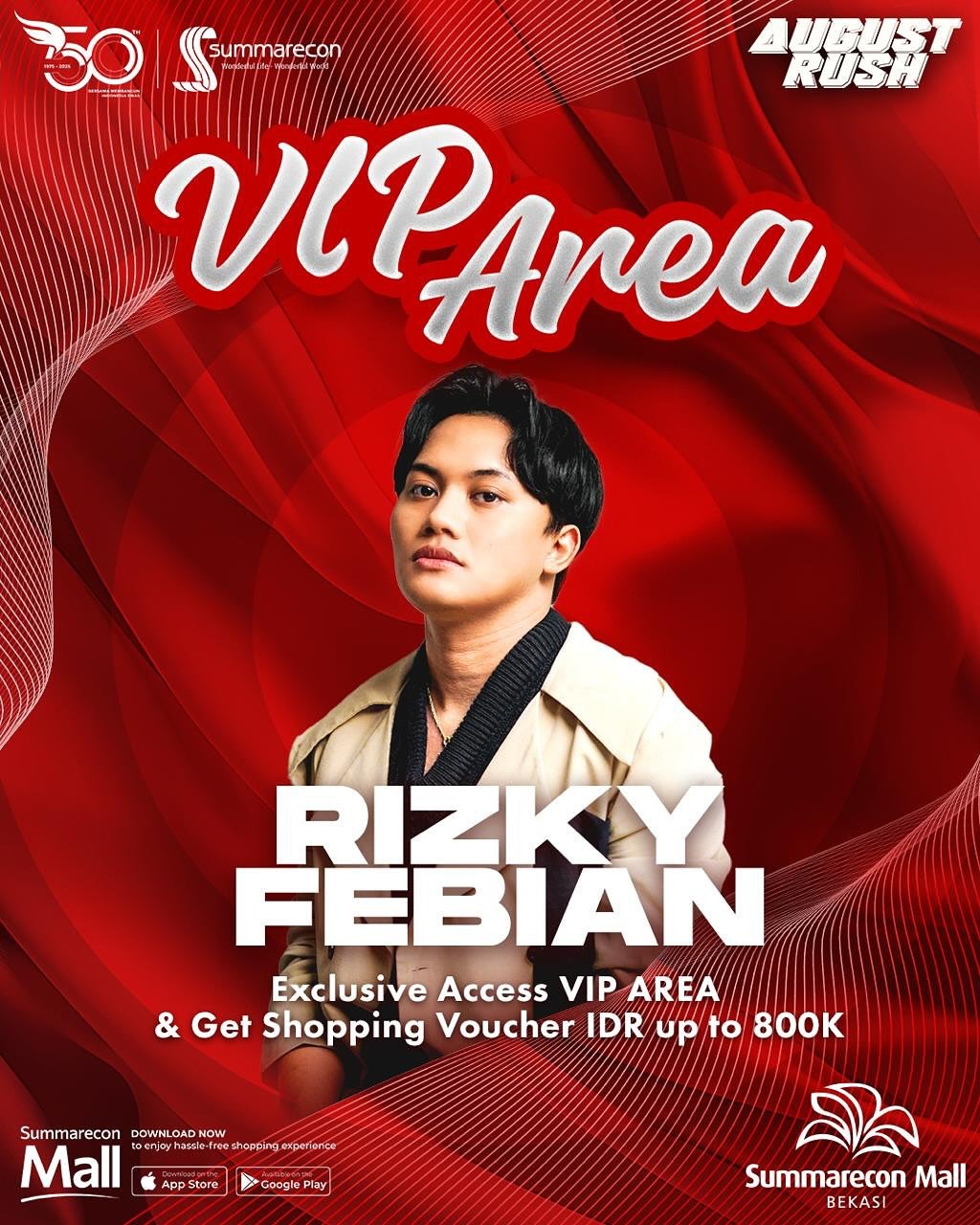 Summarecon Mall Bekasi akan menghadirkan penyanyi Rizky Febian dalam konser yang dijadwalkan berlangsung pada Sabtu, 16 Agustus 2025, pukul 19.00 WIB. Acara ini akan digelar di panggung terbuka The Downtown Walk dan terbuka untuk umum tanpa dipungut biaya.
