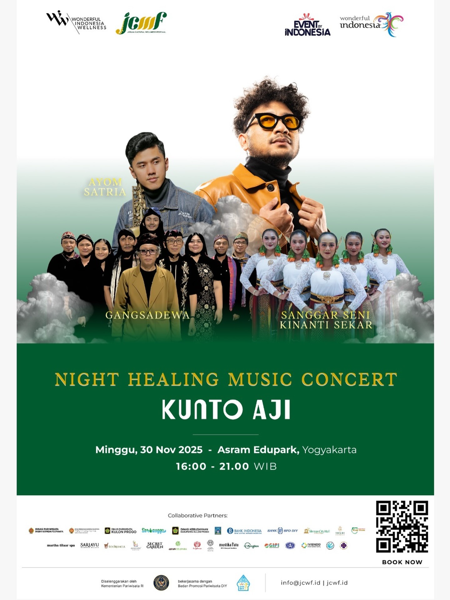 Yogyakarta, 28 November 2025 – Jogja Cultural Wellness Festival (JCWF) 2025 yang telah berlangsung selama lima pekan akan mencapai puncaknya pada akhir pekan ini, 29–30 November 2025, di Asram Edupark Yogyakarta. Bertajuk “Harmony in Wellness”, rangkaian acara penutupan ini menggabungkan unsur budaya, kesehatan tradisional, dan seni pertunjukan dalam satu harmoni.