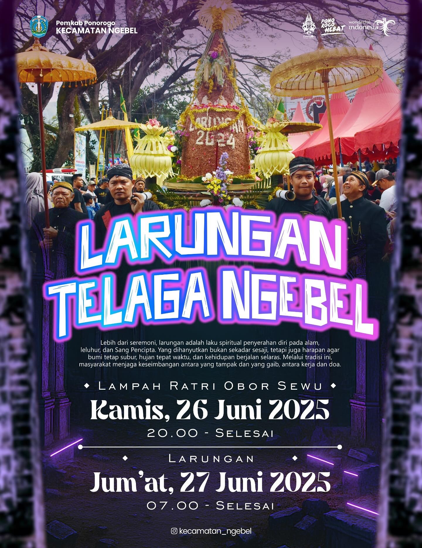 Ponorogo, 19 Juni 2025 — Telaga Ngebel, Ponorogo, kembali menjadi pusat perhatian masyarakat dan wisatawan dengan digelarnya Larungan Telaga Ngebel 2025. Upacara adat yang akan berlangsung pada 26–27 Juni ini bukan sekadar kegiatan tahunan, tetapi juga cerminan hubungan spiritual warga dengan alam dan leluhur mereka. Dalam perayaan ini, warga akan melakukan pelarungan sesaji sebagai wujud rasa syukur dan penghormatan terhadap kekuatan alam yang dipercaya melindungi kehidupan mereka.