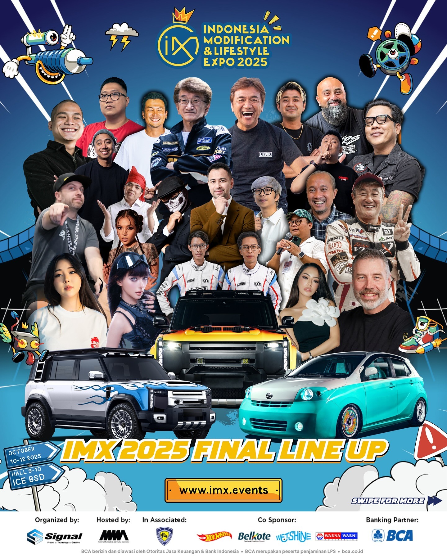 Dengan perpaduan legenda internasional, selebritas lokal, merek global maupun domestik, serta komunitas otomotif yang luas, IMX 2025 diposisikan sebagai ajang lengkap untuk para penggemar modifikasi dan gaya hidup.