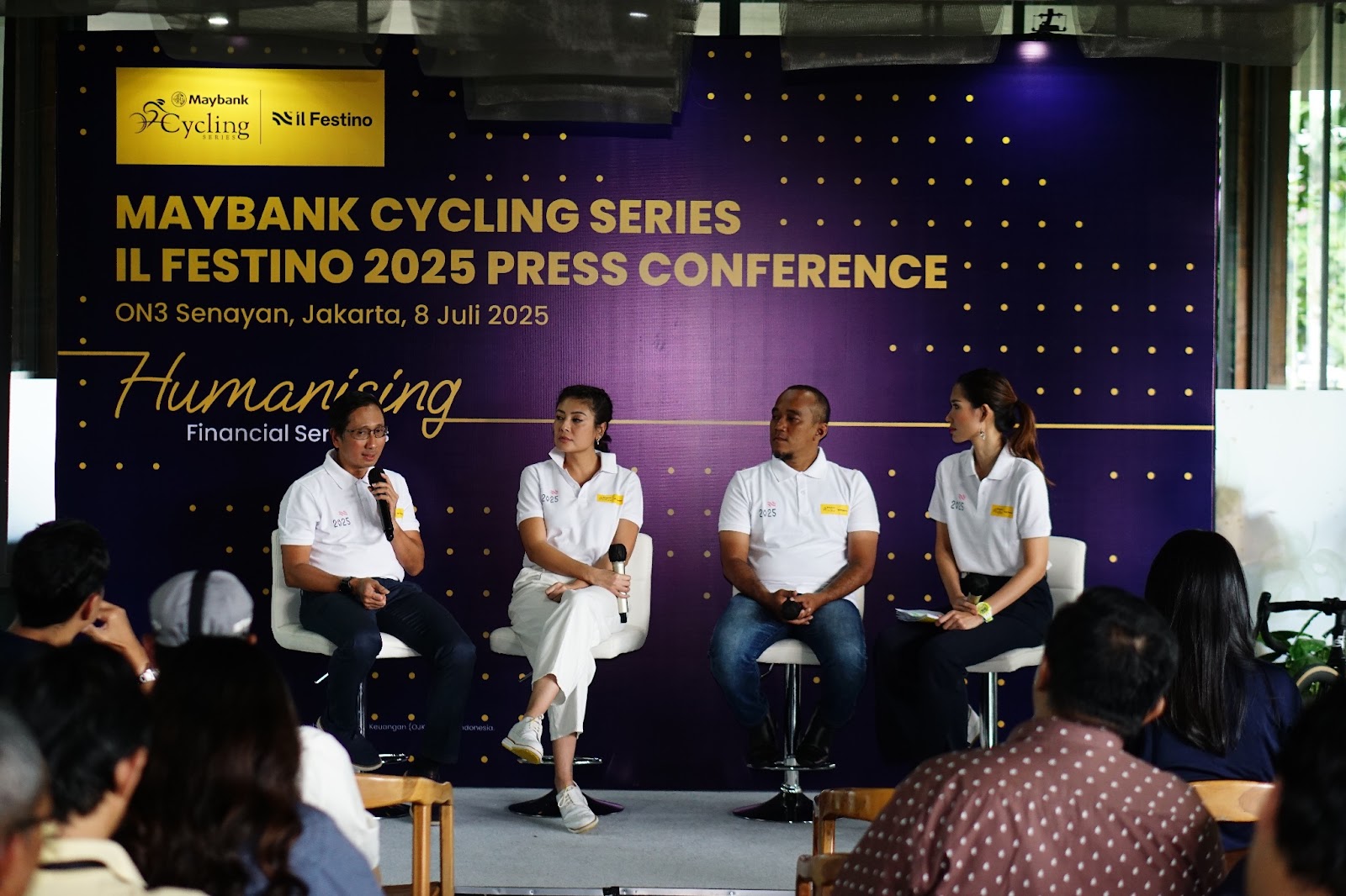 Tampak pada foto [paling kiri] Widya Permana, Project Director Maybank Cycling Series Il Festino 2025, [Tengah] Sigi Wimala, Sport Enthusiast, [Kanan] Pratomo Setyadi, Race Director Maybank Cycling Series Il Festino 2025. Maybank Cycling Series Il Festino 2025 menghadirkan dua kategori utama, Gran Fondo sejauh 137 KM dan Medio Fondo sejauh 87 KM. Tahun ini, kompetisi semakin menarik dengan hadirnya klasifikasi baru, Mixed Team, yang mendorong kolaborasi dan semangat kebersamaan di antara para peserta.