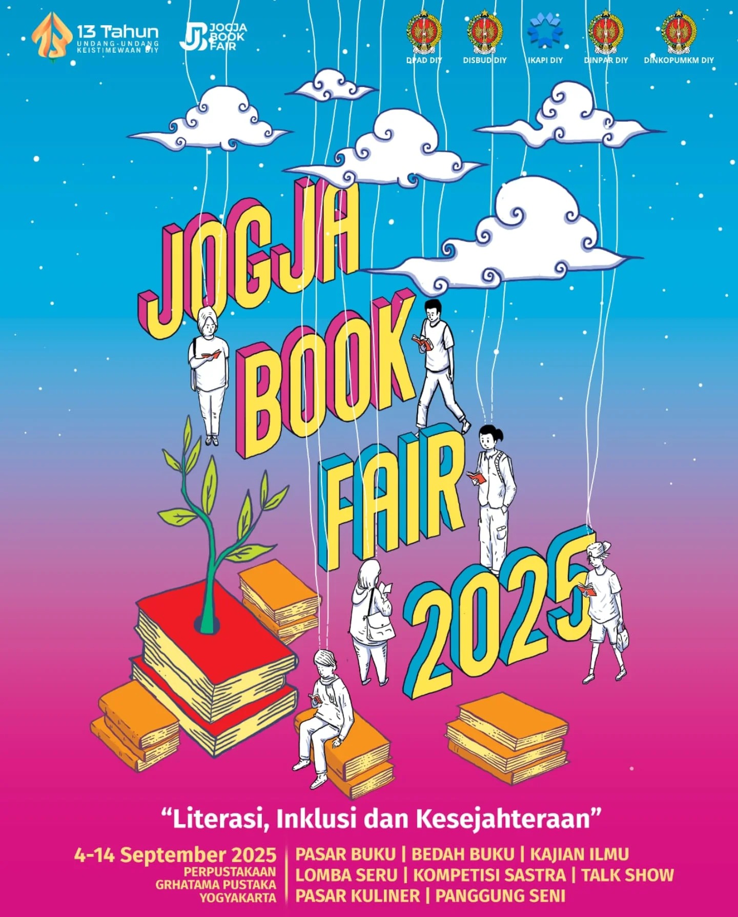 Yogyakarta, 5 Agustus 2025 – Jogja Book Fair 2025 akan digelar pada tanggal 4–14 September 2025 di Halaman Grhatama Pustaka, Dinas Perpustakaan dan Arsip Daerah Daerah Istimewa Yogyakarta. Acara ini diadakan dalam rangka memperingati Hari Literasi Internasional serta 13 tahun diberlakukannya Undang‑Undang Keistimewaan DIY.