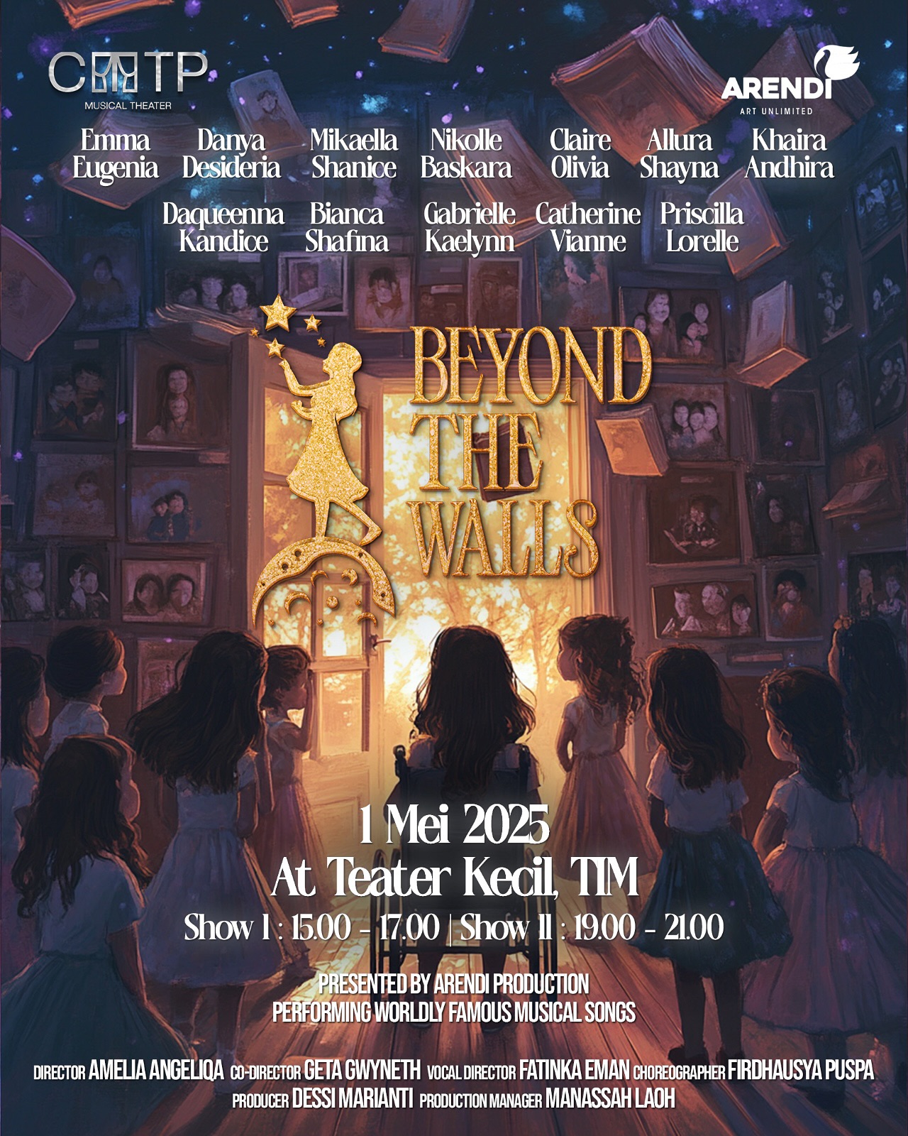 Jakarta, 28 April 2025 — Sebuah pertunjukan musikal bertajuk “Beyond The Walls” akan segera hadir di Teater Kecil, Taman Ismail Marzuki, pada 1 Mei 2025. Pertunjukan ini digarap oleh Arendi Production dan mengusung format jukebox musical yang memadukan alur cerita dengan sejumlah lagu populer.