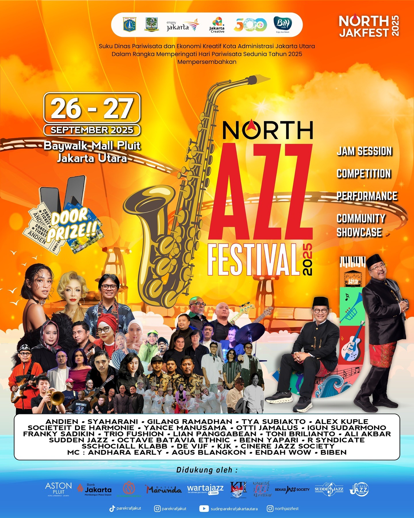 Jakarta Utara, 24 September 2025 – North Jazz Festival 2025 akan segera hadir di Baywalk Mall Pluit, Jakarta Utara, pada 26 hingga 27 September 2025. Festival ini digelar untuk memperingati Hari Pariwisata Sedunia 2025 dengan menampilkan musisi jazz ternama Indonesia bersama deretan finalis hasil kompetisi.