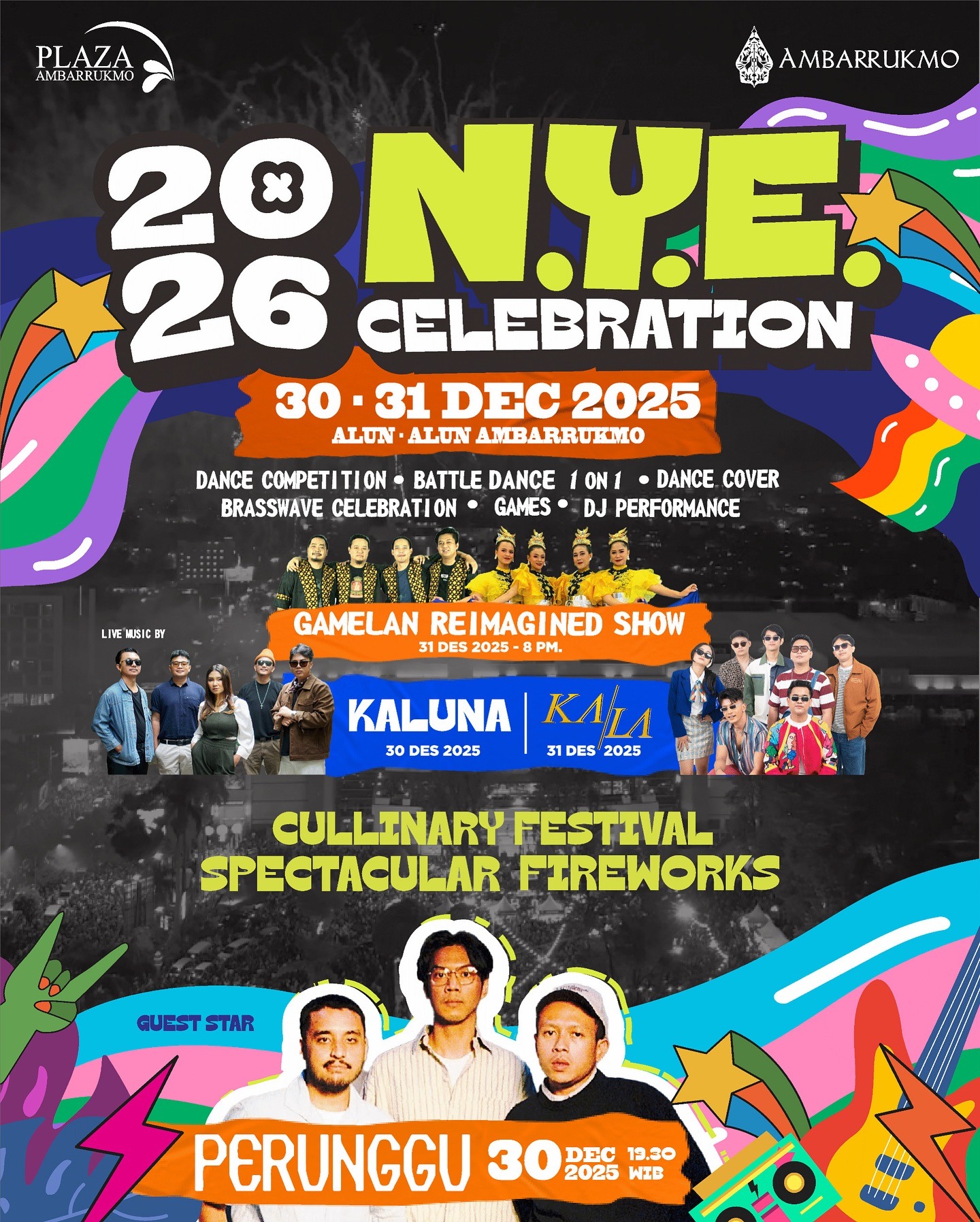 Yogyakarta, 14 November 2025 – Agenda perayaan akhir tahun bertajuk 2026 NYE Celebration akan digelar pada 30–31 Desember 2025 di Alun-Alun Ambarrukmo, Sleman, dengan sejumlah kegiatan hiburan yang mencakup dua hari kegiatan menuju pergantian tahun.