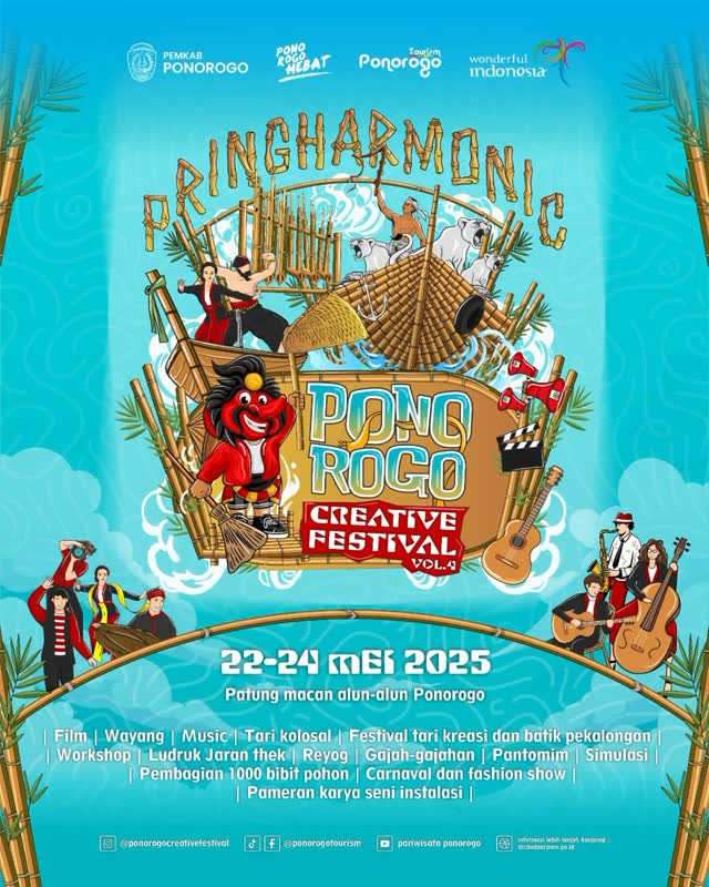 Ponorogo, 6 Mei 2025 — Kabupaten Ponorogo kembali bersiap menjadi tuan rumah bagi perhelatan tahunan bertajuk Ponorogo Creative Festival (PCF) 2025. Tahun ini, acara tersebut memasuki volume keempat dan akan digelar selama tiga hari, mulai 22 hingga 24 Mei 2025 di Patung Macan, Alun-Alun Ponorogo.