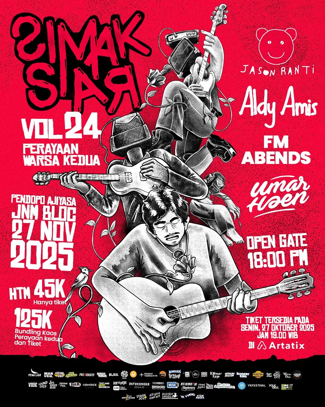 Barisan penampil untuk Simak Siar Vol. 24 mencakup Jason Ranti, Aldy Amis, FM Abends, dan Umar Haen. Keempat nama tersebut akan mengisi panggung di Pendopo Ajiyasa dengan karakter musik masing-masing, mencerminkan keragaman warna yang menjadi ciri khas skena musik Yogyakarta.