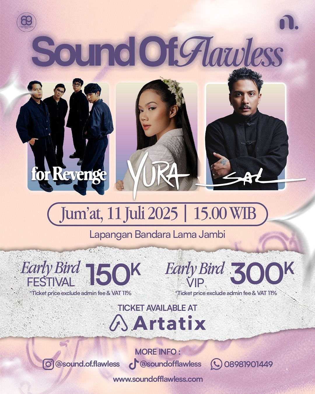 Jambi, 3 Juni 2025 — Sebuah agenda pertunjukan musik tengah dipersiapkan untuk mengisi pertengahan bulan Juli di Jambi. Berdasarkan pengumuman yang dirilis melalui media sosial, sebuah festival musik bertajuk Sound of Flawless Vol. 2 akan diselenggarakan pada Jumat, 11 Juli 2025, di Lapangan Bandara Lama Jambi. Acara ini dijadwalkan berlangsung dari pukul 15.00 hingga 23.00 WIB.