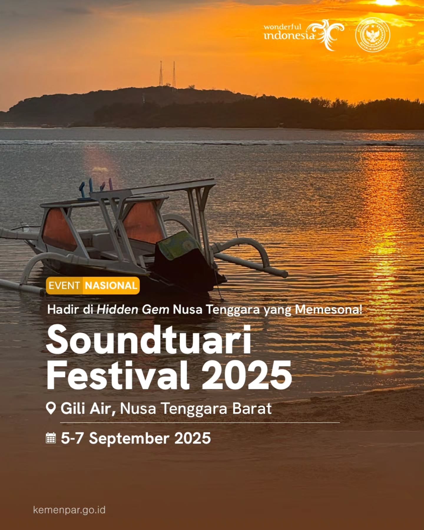 Nusa Tenggara Barat, 7 Mei 2025 – Gili Air, sebuah pulau kecil di Lombok Utara, Nusa Tenggara Barat, akan menjadi tuan rumah Soundtuari Festival 2025, sebuah acara yang menggabungkan musik kelas dunia, seni instalasi, dan budaya lokal. Festival ini akan berlangsung selama tiga hari, mulai 5 hingga 7 September 2025, dan diproyeksikan menarik sekitar 5.000 pengunjung dari berbagai negara.