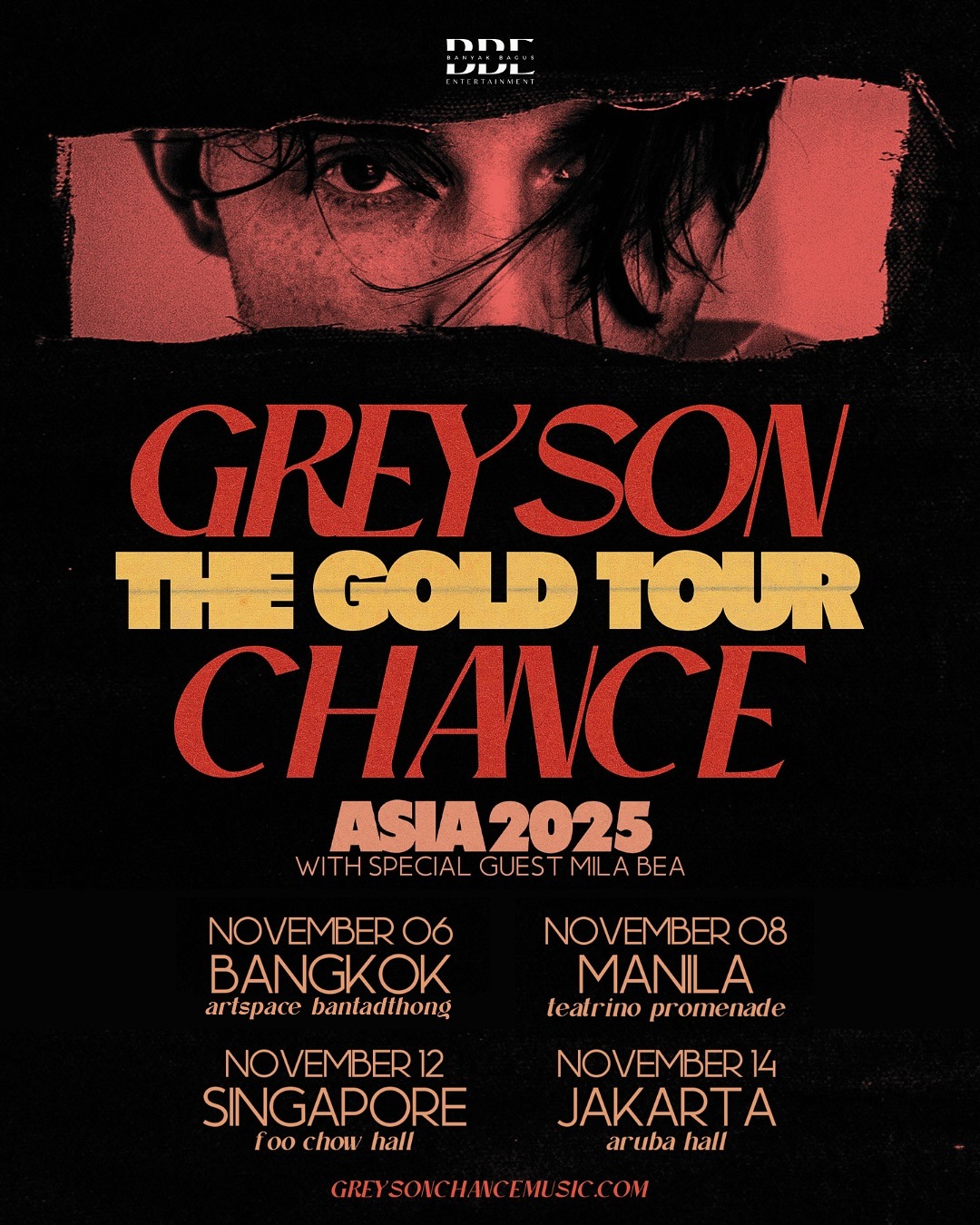 Jakarta, 9 Juni 2025 — Penyanyi asal Amerika Serikat, Greyson Chance, akan kembali menggelar tur Asia bertajuk The Gold Tour pada Oktober hingga November 2025. Informasi resmi dari situs greysonchancemusic.com mengonfirmasi enam kota di Tiongkok sebagai tujuan awal tur. Selain itu, empat kota tambahan di Asia Tenggara telah diumumkan oleh promotor melalui media sosial, termasuk Jakarta.