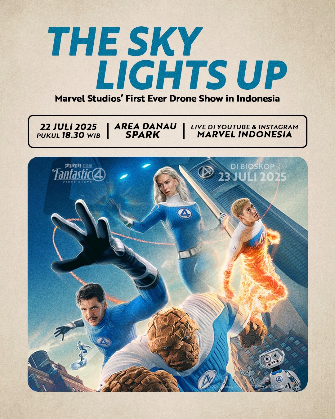 Sebagai penutup, pertunjukan The Sky Lights Up menjadi bagian dari rangkaian peluncuran film The Fantastic Four: First Steps di Indonesia. Informasi lebih lanjut dan pembaruan seputar acara dapat ditemukan melalui media sosial resmi Marvel Indonesia di Instagram dan YouTube.