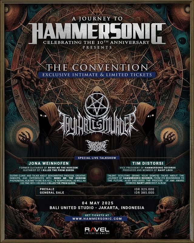 Jakarta, 17 April 2025 – Hammersonic bersiap merayakan satu dekade perjalanannya dengan sebuah acara spesial bertajuk Journey to Hammersonic 10th Year Anniversary: THE CONVENTION. Digelar pada 4 Mei 2025 di Bali United Studio, Jakarta, acara ini menawarkan pengalaman konser yang lebih dekat dan eksklusif bagi para penikmat musik metal.