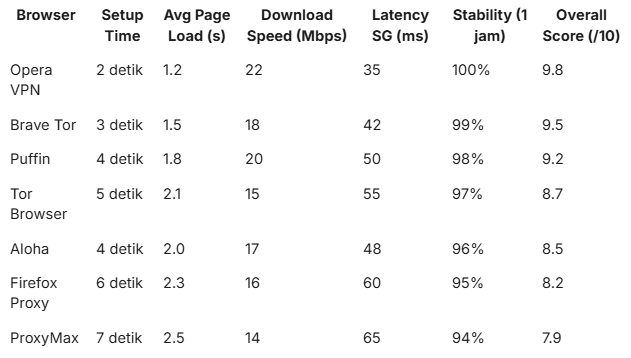 Sync cross-device, RAM ringan i7.Kekurangan: Speed drop 10% Tor max.Best for: Privacy streamer keluarga. Download: brave.com (60MB). Tutorial 3 detik: 1. Install, 2. brave://settings/shields > Tor, 3. Activate.