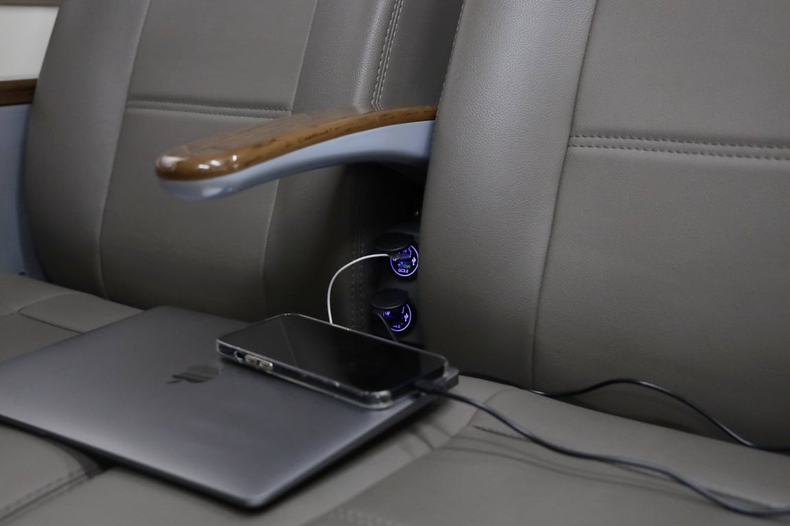 3. Terdapat Port USB charger di setiap kursi untuk kenyamanan penggunaan perangkat elektronik.