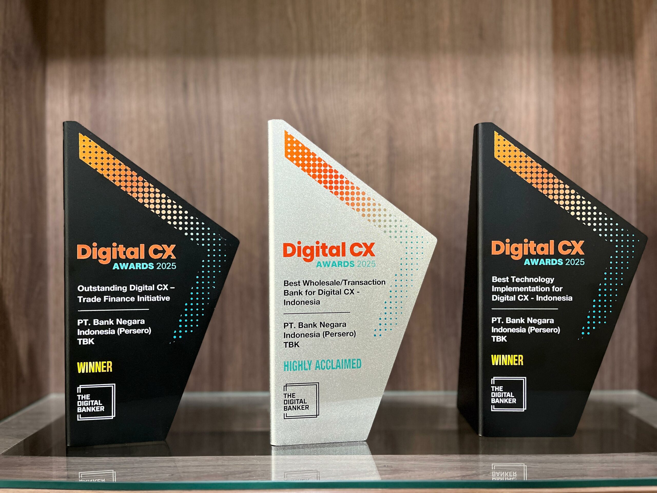 Sebanyak tiga penghargaan yang diraih BNI antara lain, Best Technology Implementation for Digital CX – Indonesia, Outstanding Digital CX – Trade Finance Initiative, serta Best Wholesale/Transaction Bank for Digital CX – Indonesia. Ketiga kategori ini menyoroti keunggulan BNI dalam menghadirkan solusi digital yang inovatif, menyeluruh, dan berorientasi pada kebutuhan nasabah korporasi yang dihadirkan lewat inovasi BNIdirect.