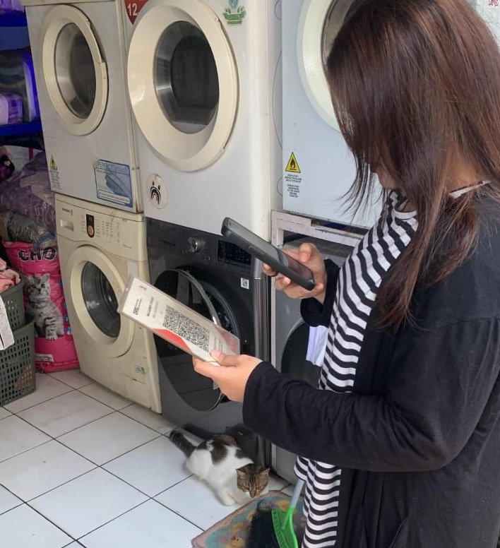 Keterangan Foto: Pelanggan sedang membayar laundry menggunakan QRIS dari DANA