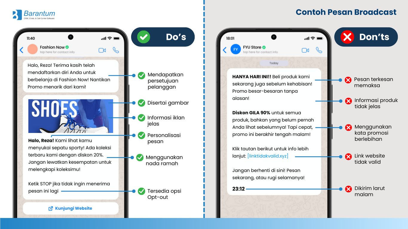 Barantum membangun sistem broadcast bukan sebagai alat “kirim massal”, tetapi sebagai infrastruktur komunikasi bisnis.