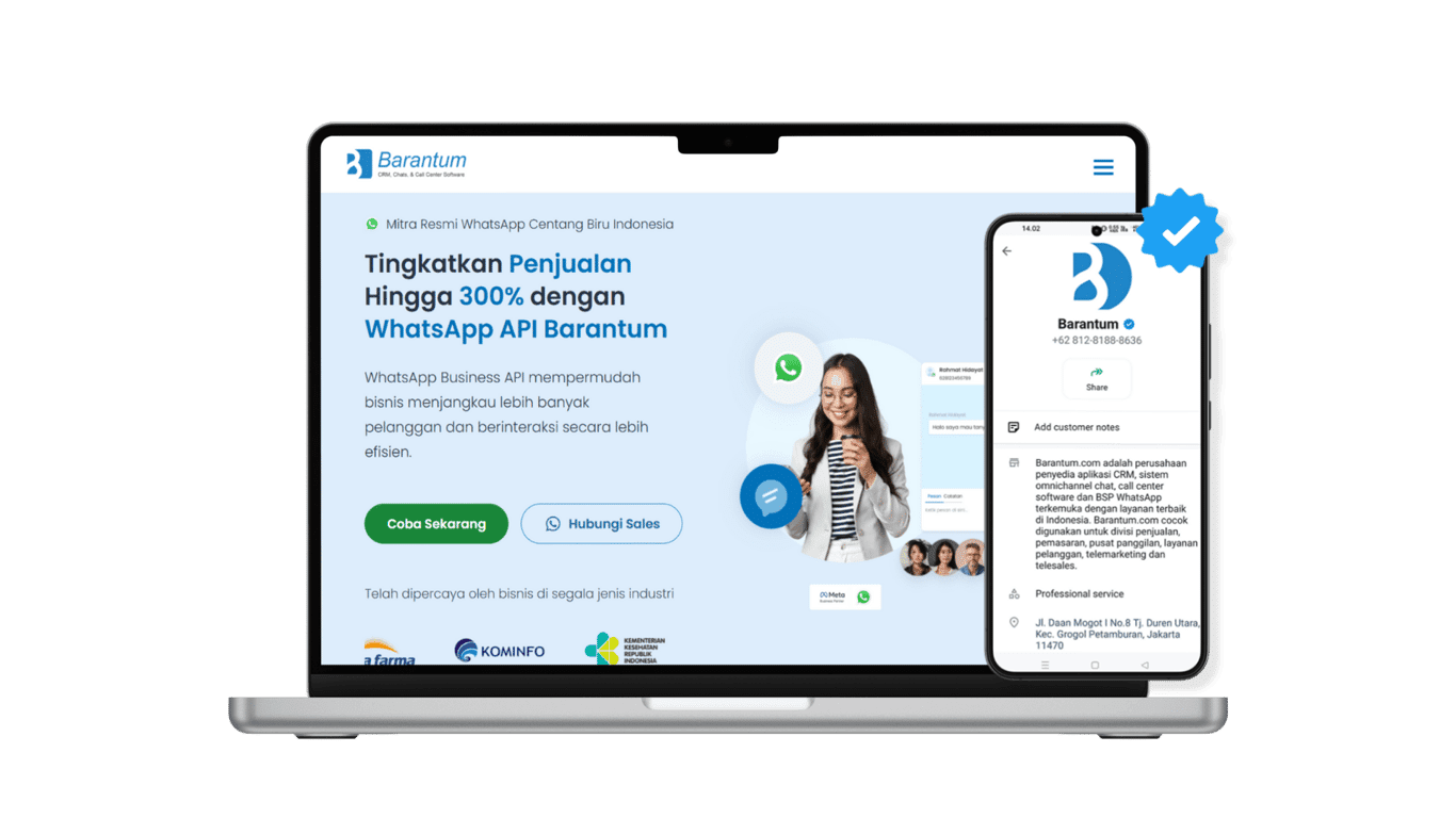 10 Februari 2026 – Barantum menyatukan CRM, AI Agent, Omnichannel dan WhatsApp Business API dalam satu dashboard, memudahkan bisnis mengelola semua percakapan pelanggan, meningkatkan efisiensi, serta mempercepat respon. Hasilnya, kepuasan pelanggan meningkat dan penjualan bisnis lebih optimal.