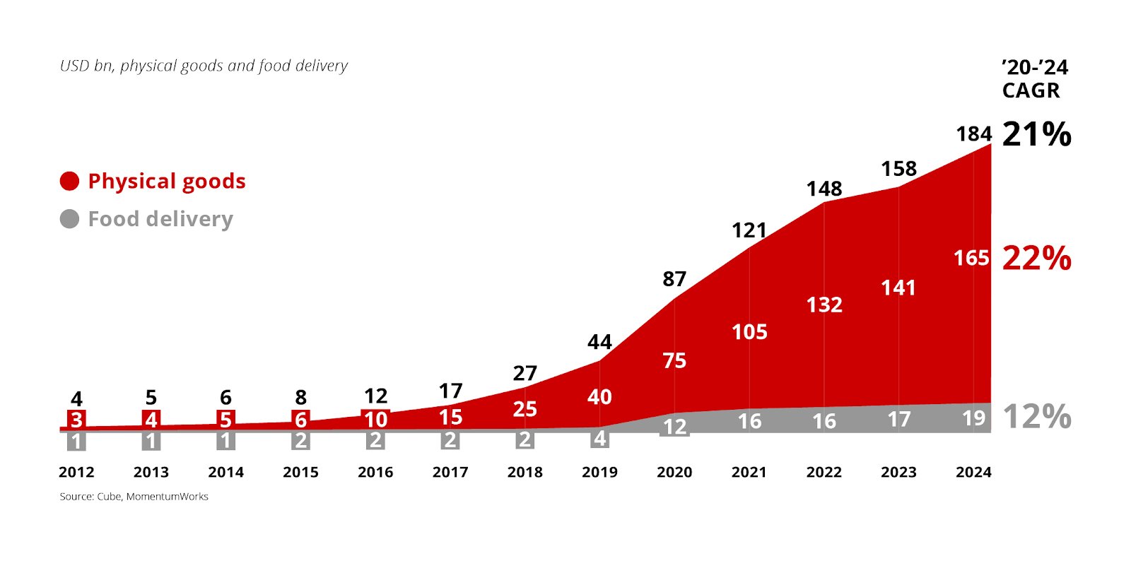 - Laporan terbaru tunjukkan para pemain terbesar di kawasan ini capai profitabilitas berkat penjualan e-commerce yang melonjak 21% setiap tahunnya dari tahun 2020 hingga 2024
