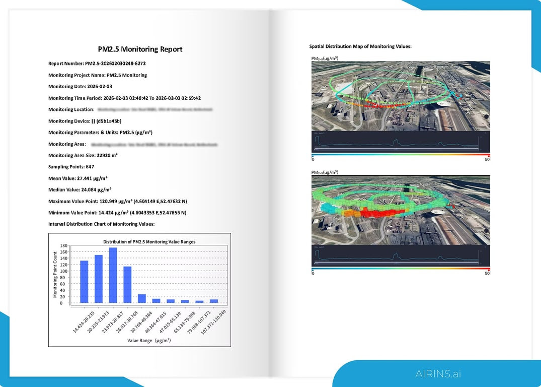 Data hasil pengukuran ditampilkan secara real-time melalui DJI Pilot dan DJI FlightHub 2, kemudian divisualisasikan menggunakan AIRINS.ai dalam bentuk peta dua dimensi, tiga dimensi, serta interpolasi distribusi konsentrasi gas. Setelah misi selesai, sistem secara otomatis menghasilkan laporan dalam format PDF atau CSV untuk kebutuhan dokumentasi dan analisis lebih lanjut.