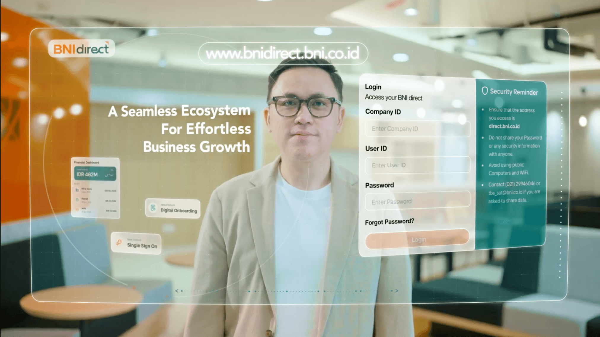 “Hal ini kami lakukan untuk mendukung transformasi digital di sektor keuangan dan membantu nasabah korporasi dan bisnis tumbuh lebih cepat di era digital,” ujar Paolo. Untuk informasi lebih lanjut mengenai BNIdirect, silakan kunjungi situs BNIdirect: https://direct.bni.co.id.