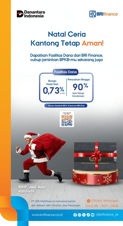 Jakarta, 23 Desember 2025 – Memasuki momentum Natal dan libur akhir tahun, kebutuhan masyarakat untuk bepergian, pulang kampung, hingga memenuhi berbagai keperluan keluarga cenderung meningkat. Di tengah suasana yang lekat dengan kebersamaan dan refleksi, PT BRI Multifinance Indonesia (“BRI Finance”) menghadirkan program pendanaan spesial sebagai solusi untuk membantu masyarakat mempersiapkan musim liburan dengan lebih terencana dan nyaman.